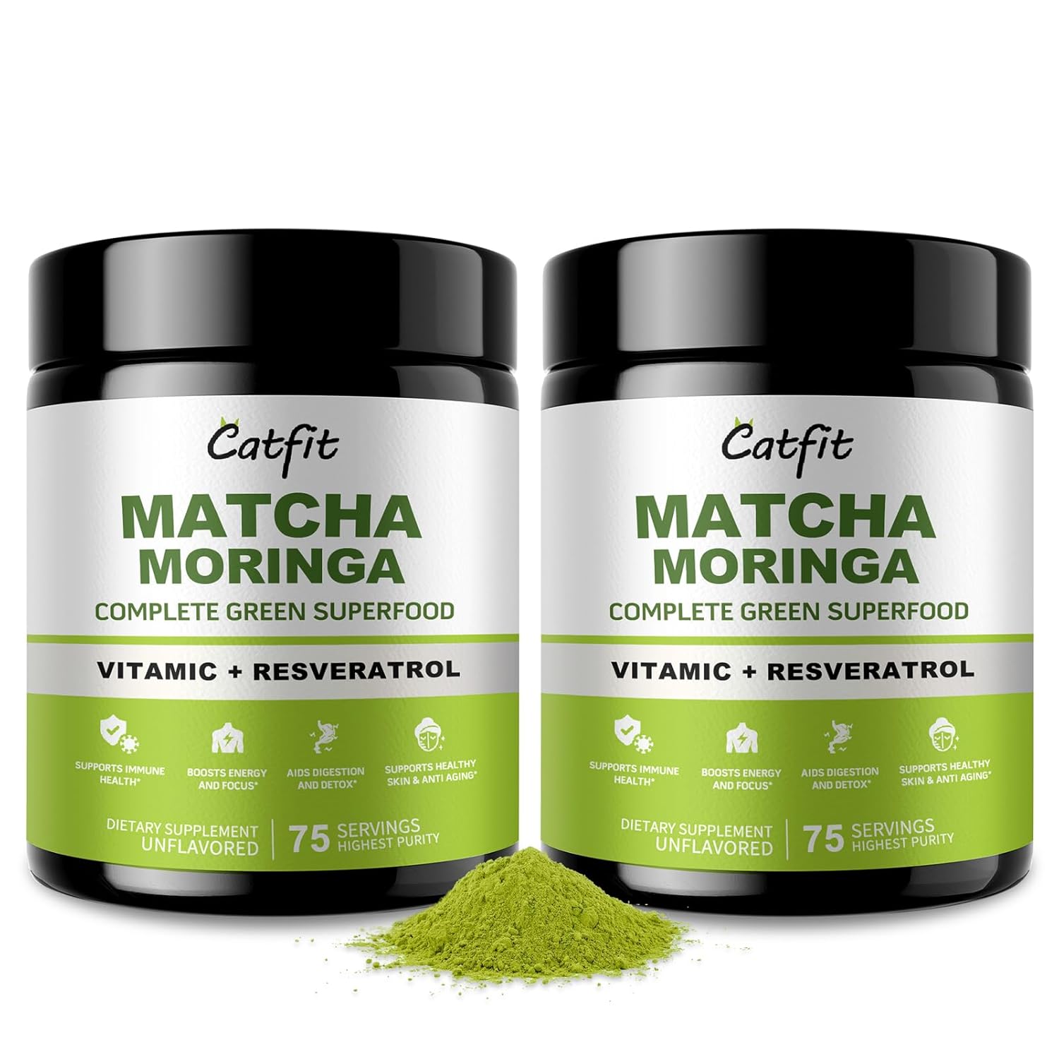 Powerful Superfood Blend – Catfit moringa powder contains 1,655mg matcha powder, 1,200mg moringa leaf powder, green tea powder & resveratrol per serving. This formula provides comprehensive health support, including energy enhancement, antioxidant protection, and immune system strengthening.