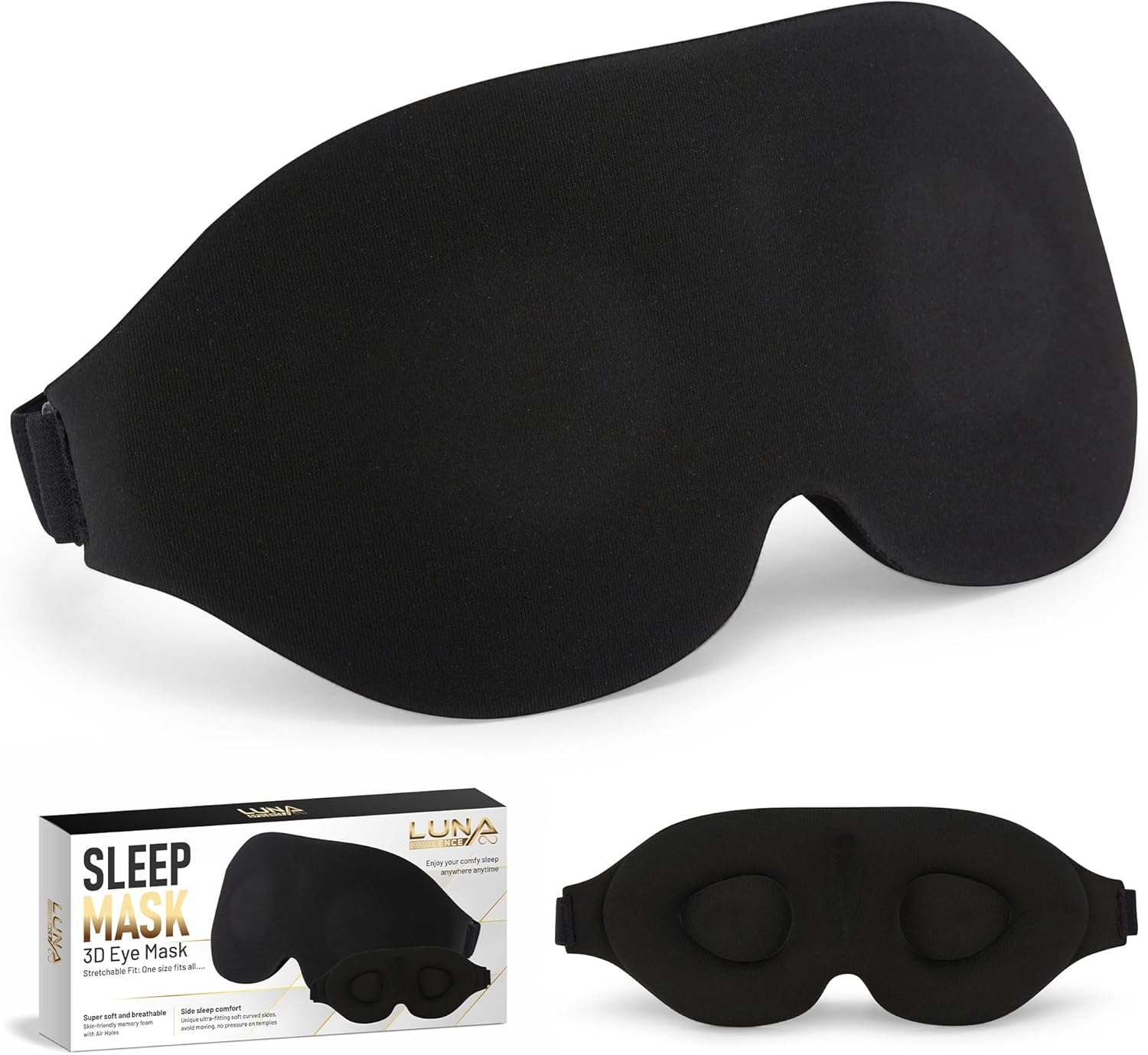 3D Sleep Mask with Travel Storage Bag – Blackout Eye Mask for Sleeping, Side Sleepers & Travel – Soft Memory Foam, Adjustable Strap, Lightweight & Comfortable Fit
