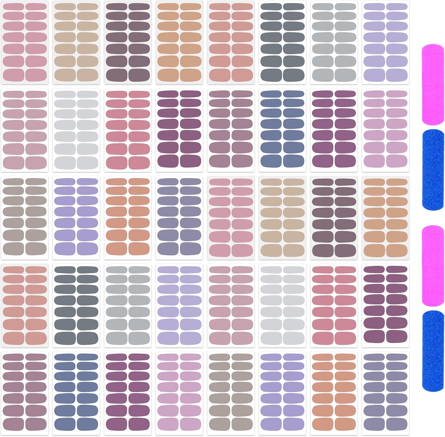40 Sheets Elegant Solid Color Nail Polish Strips with Nail File Self-Adhesive Grey Purple Color Nail Strips Nail Stickers Full Nail Wraps for Women Nail Art