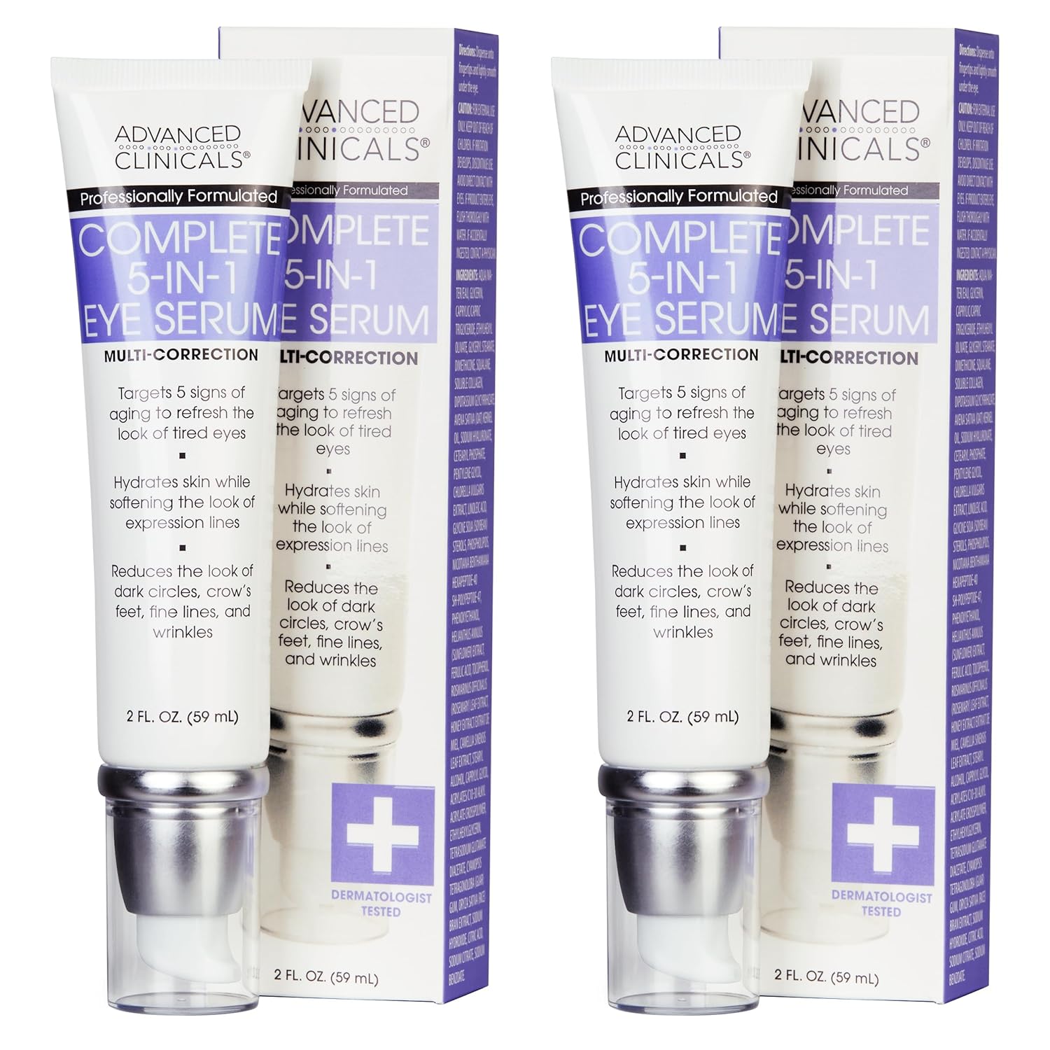 Advanced Clinicals 5-in-1 Eye Serum | Multi-Benefit Visible Anti Aging Under Eye Serum Face Moisturizer Reduces Appearance Of Dark Circles, Puffy Eyes, Crows Feet, Wrinkles, & Fine Lines, 2-Pack