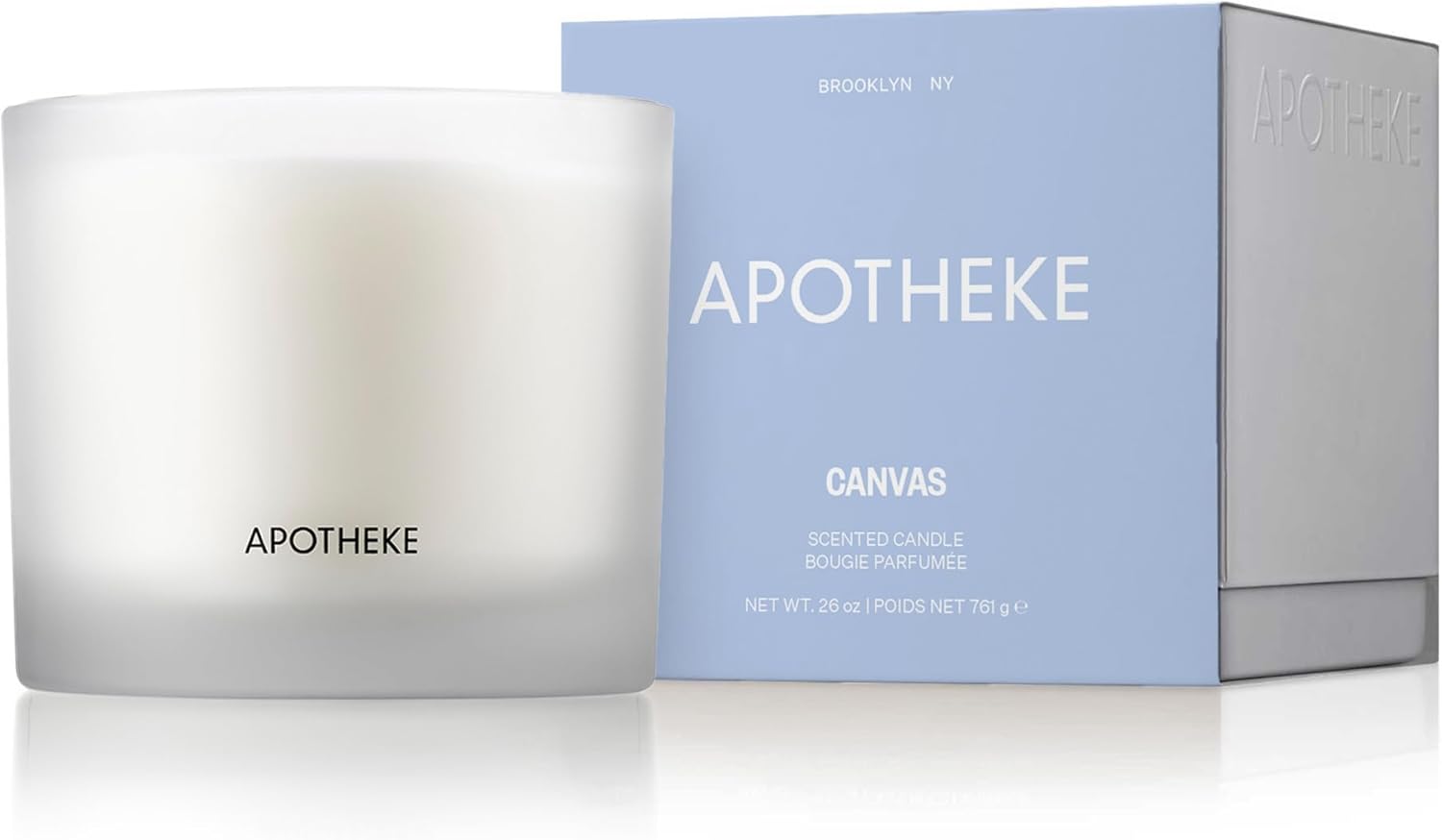 Apotheke 3-Wick Scented Candles for Home, Canvas - 26 oz Soy Wax Jar Candle Gift for Women - Long-Lasting Fragrance with Perfume-Grade Essential Oils - White Musk, Dew Drops & Lily of The Valley