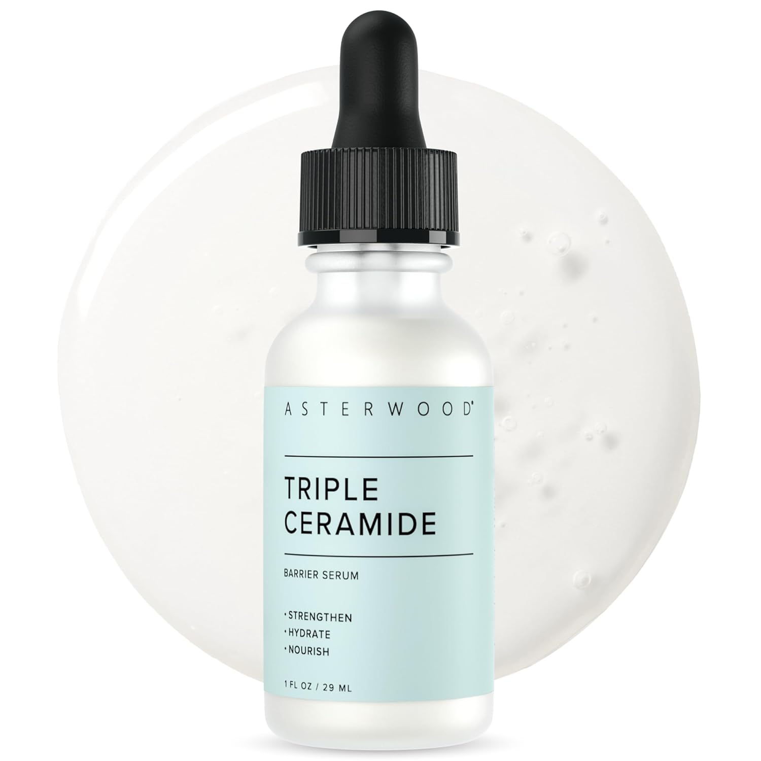 Asterwood Triple Ceramide Barrier Repair Serum - Hydrating, Calming, & Barrier-Restoring Skin Facial Serum - with Ceramide Complex, Squalane, Hyaluronic Acid - Fragrance-Free, Cruelty-Free - 1 Fl Oz