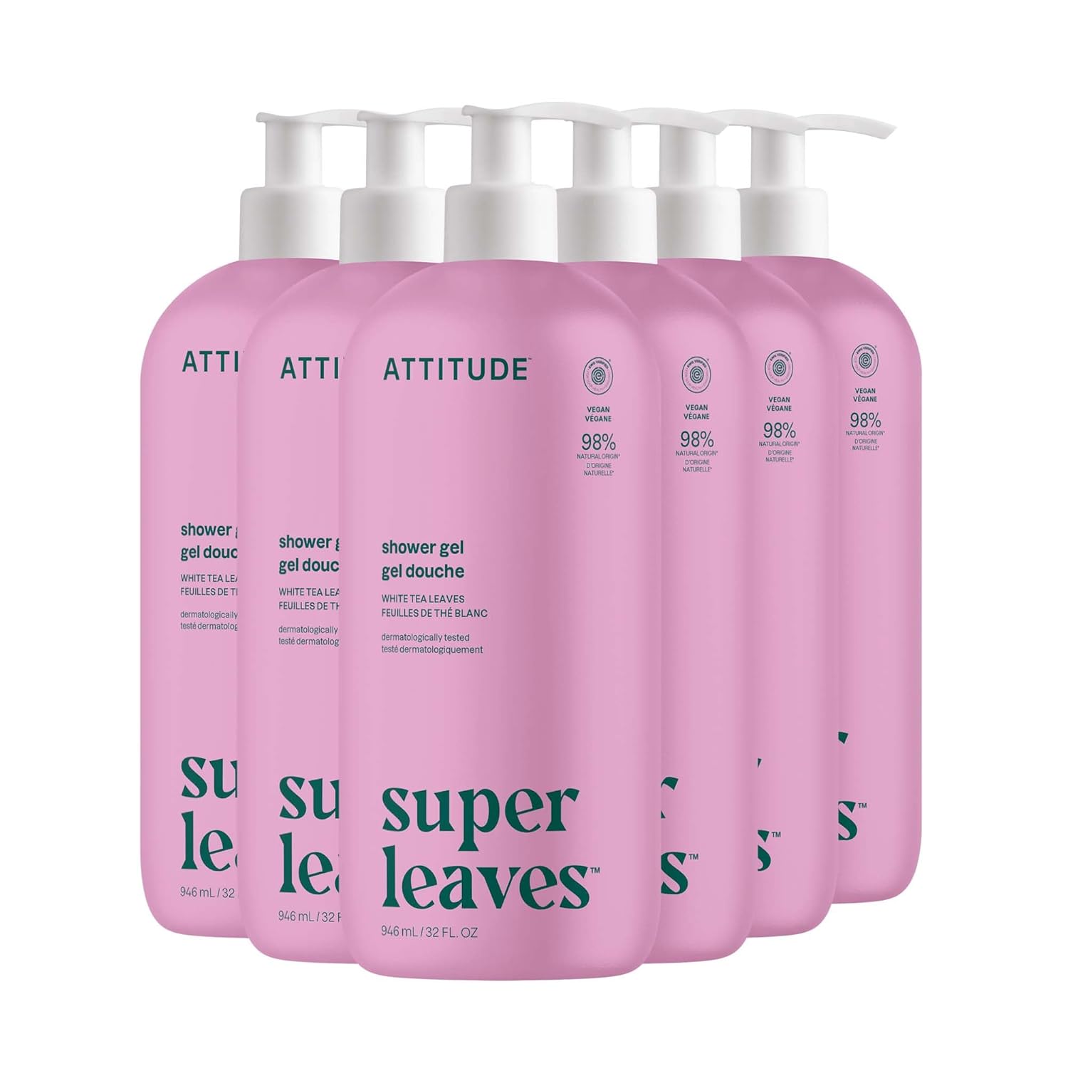 ATTITUDE Body Wash, EWG Verified Shower Gel, Dermatologically Tested, Plant and Mineral-Based, Vegan Personal Care Products, White Tea Leaves, 32 Fl Oz (Pack of 6)