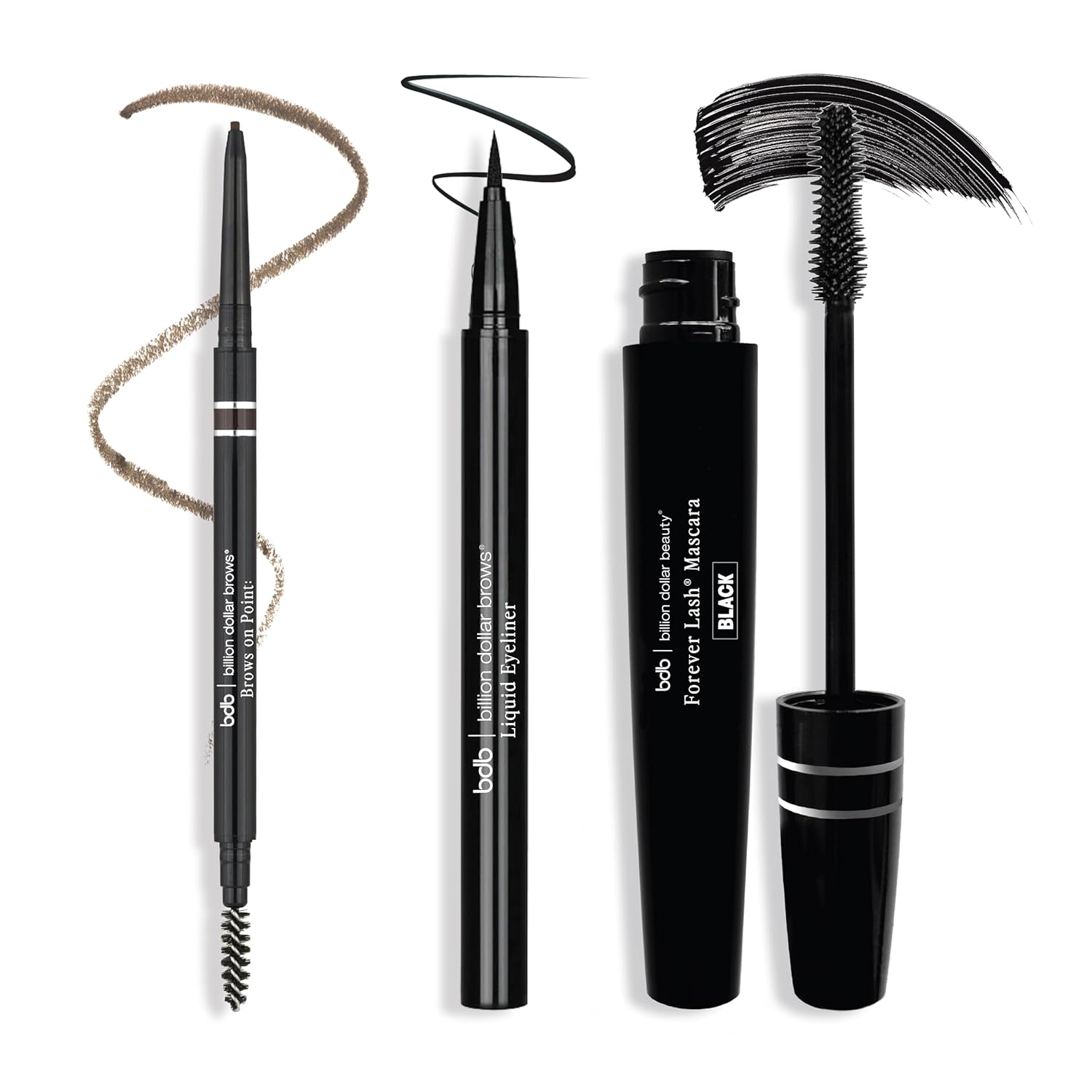 Pro Tools, No Stress - Precision pencil, flexible liner tip, and defining mascara—all beginner-friendly