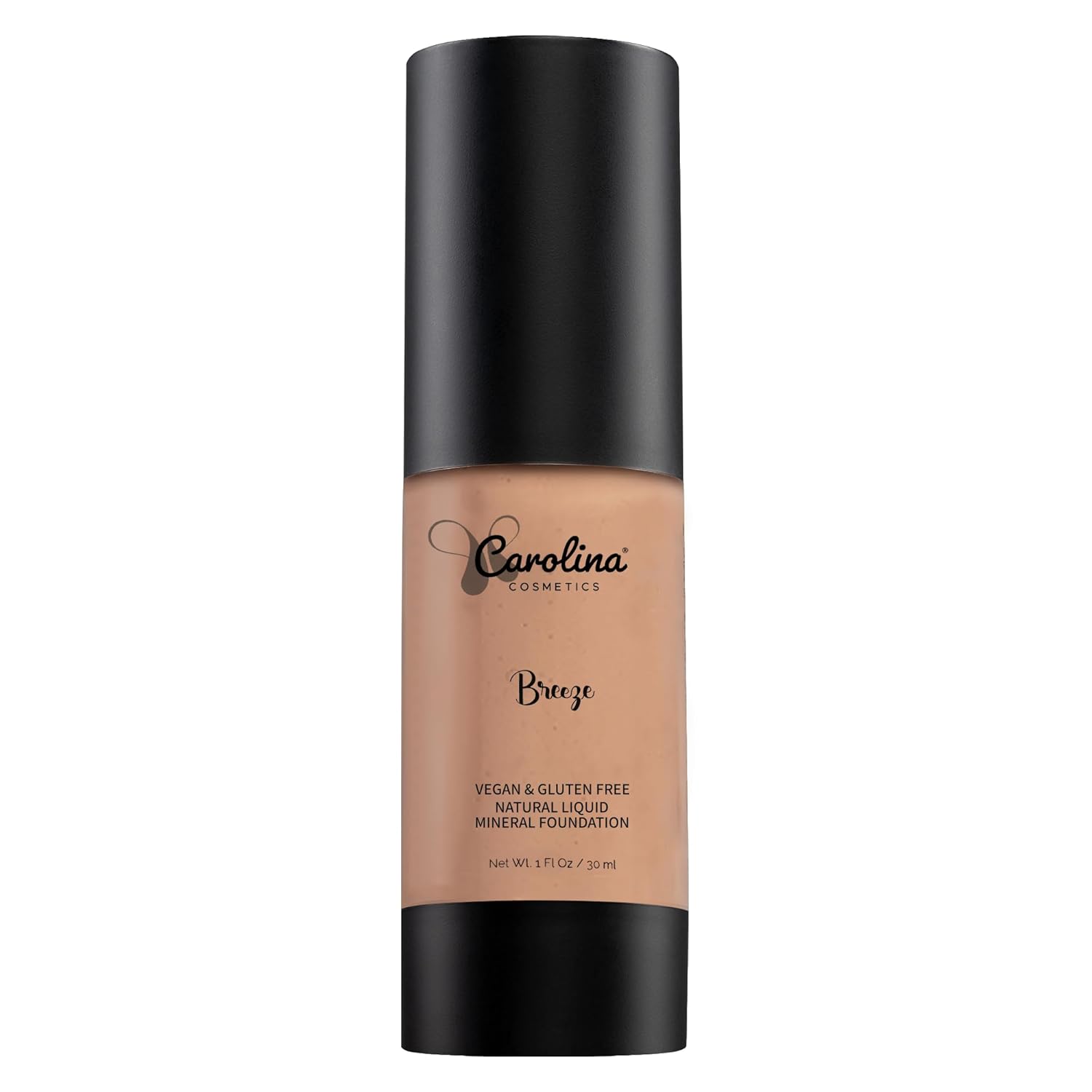 Carolina Cosmetics - Foundation in Breeze Shade Plant-Based - Hydrating, Pore-Minimizing & Buildable Coverage - Vegan, Non-GMO, Paraben-Free - 1oz