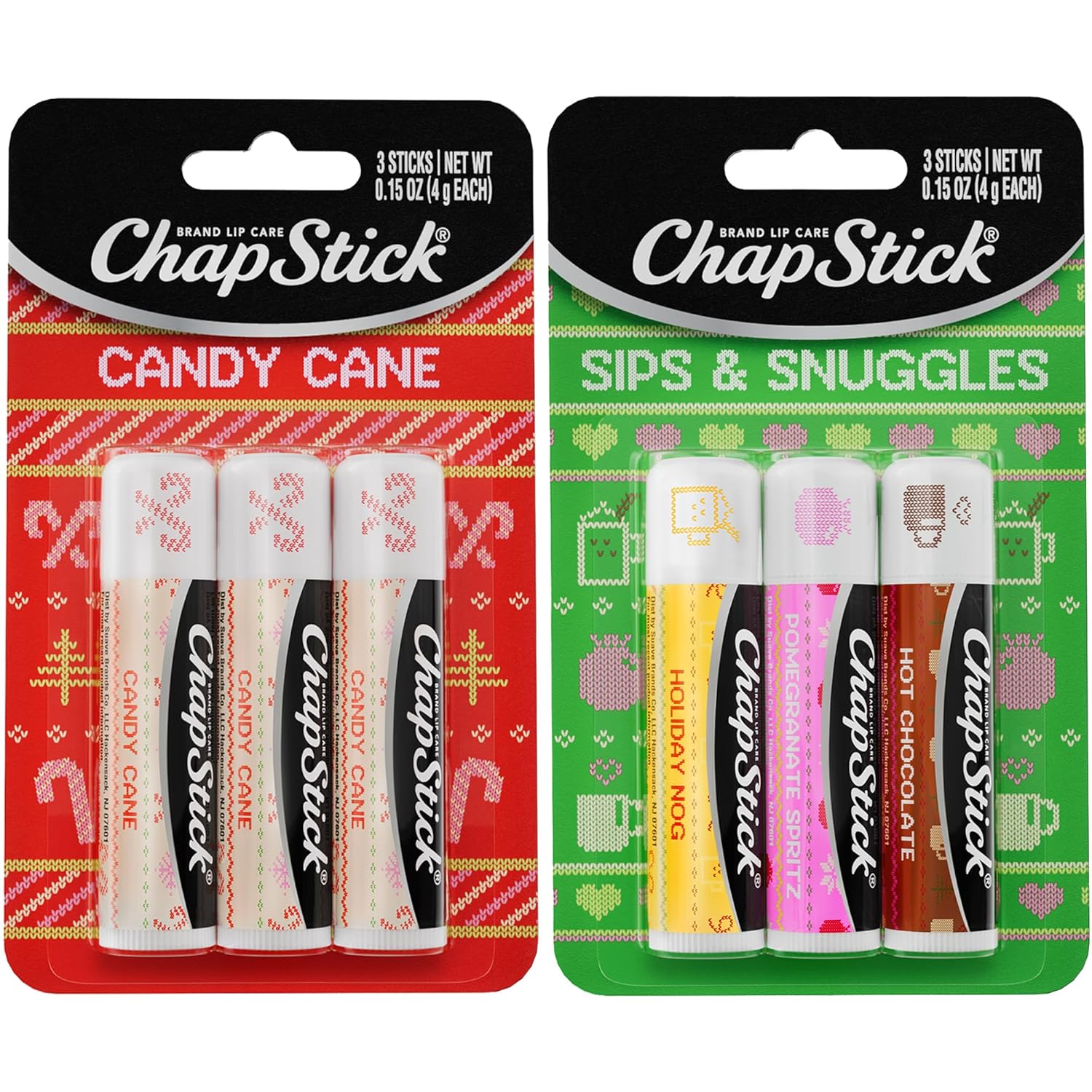 ChapStick Lip Balm, Holiday Variety Packs (6 Sticks) – Candy Cane, Sips & Snuggles Flavored Lip Moisturizers, Stocking Stuffers, Gifts, 0.15 Oz Ea