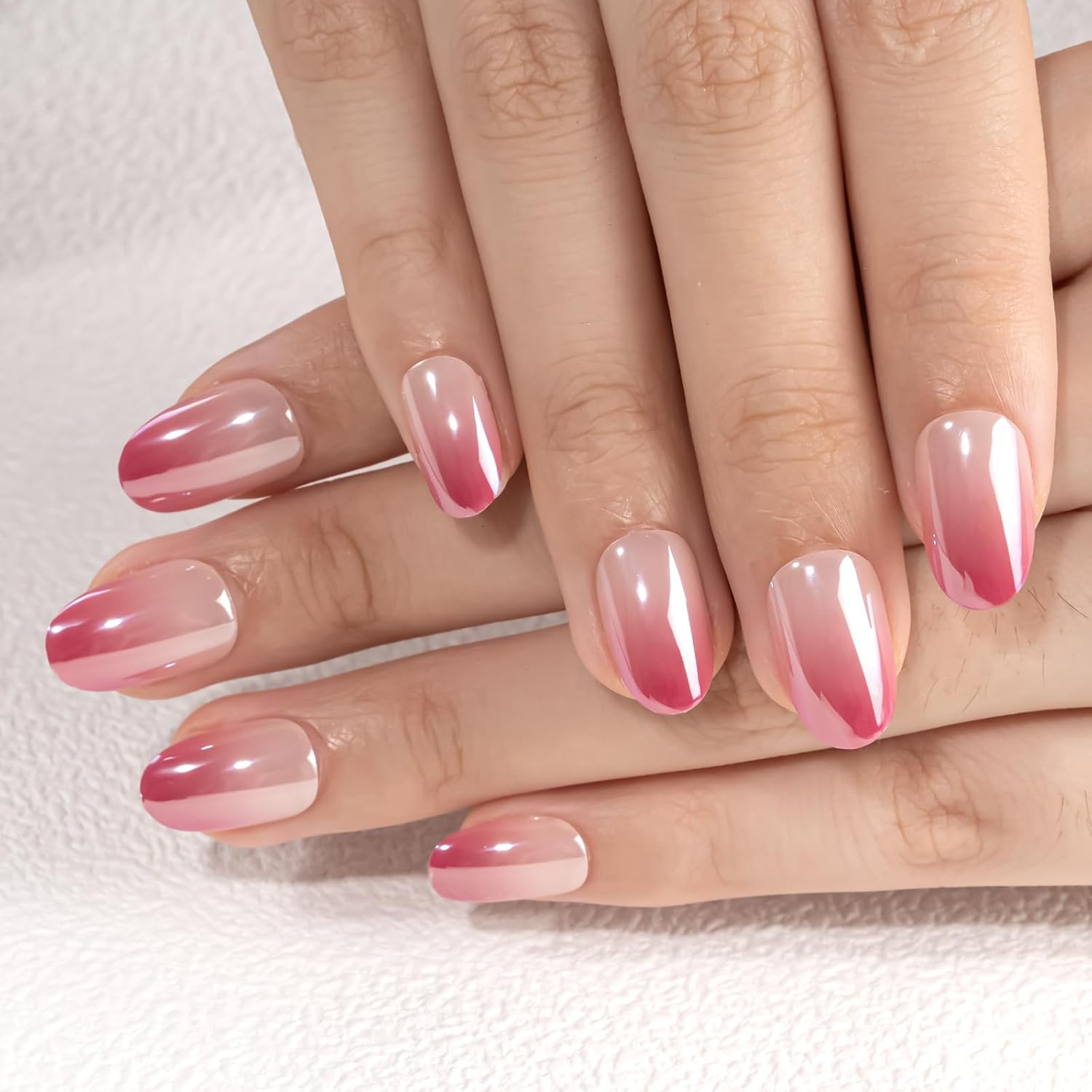 Curvlife Soft Gel Press On Nails Kit - 30pcs Full Cover False Gradient Red High-Shine Chrome Nail Tips Designs, Fake Nail with Nail Glue - Easy Application Nail Accessories for Women