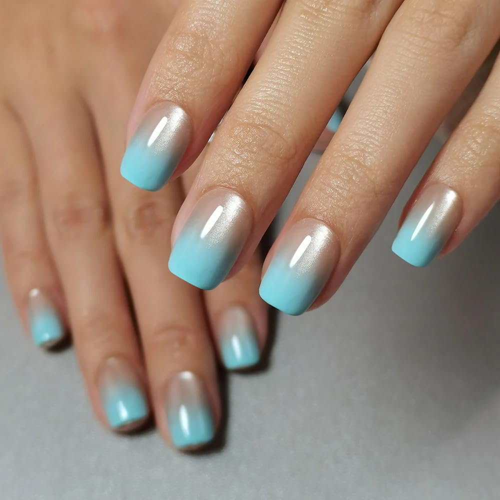 Curvlife Soft Gel Press On Nails Kit - 30pcs Full Cover Ombre Cat Eye False Nail Tips Designs, Fake Nail with Nail Glue - Easy Application Nail Accessories for Women