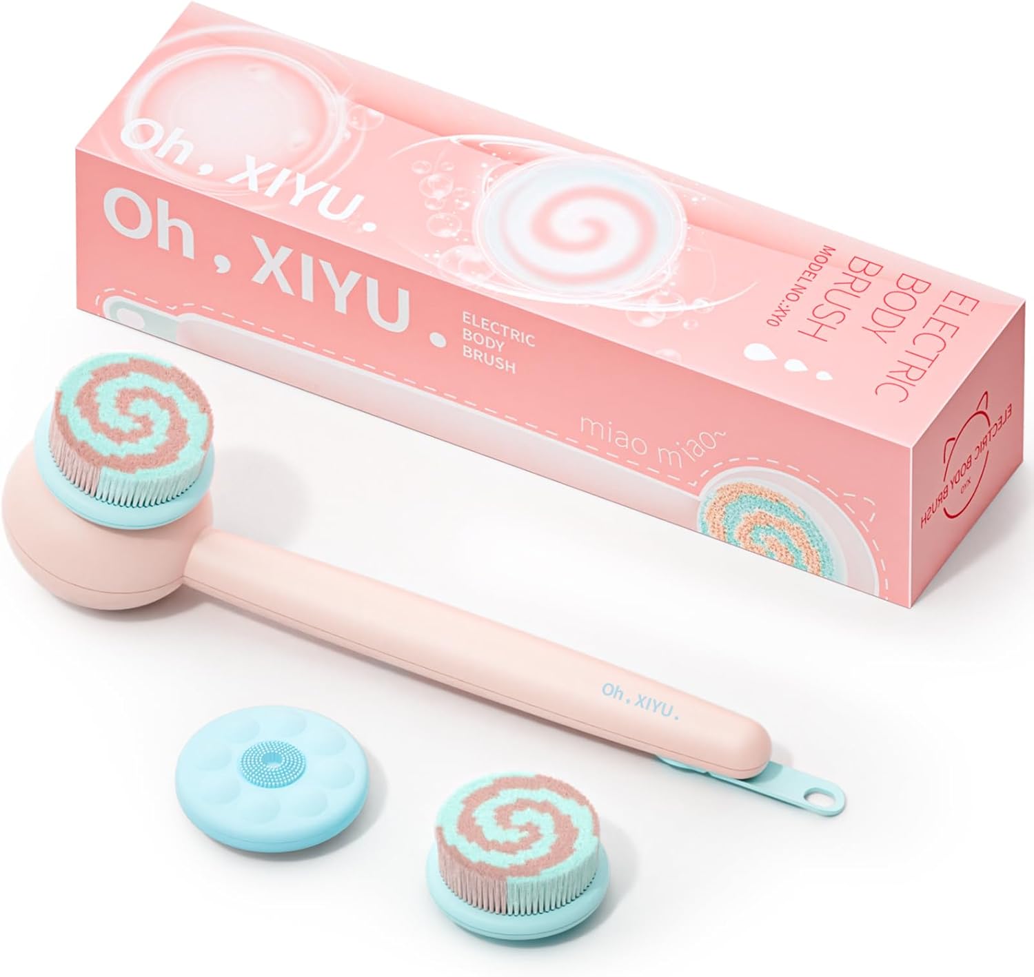 Chic & Functional Design: This electric body brush features a playful yet elegant design with cute cat ears, lollipop-textured bristles, and a soft macaron color palette. The long ergonomic handle provides a comfortable grip for easy reach of the back and body. Powered by a multi-speed motor, this shower brush delivers a soothing cleanse that is both effective and relaxing, transforming your daily shower into a delightful self-care ritual