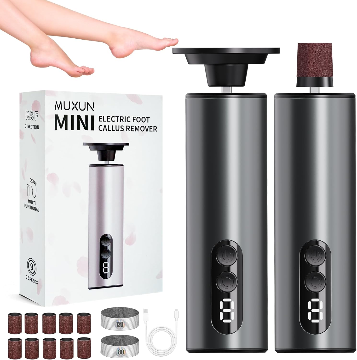 Electric Foot Callus Remover,2 in1 Rechargeable Callus Remover for Feet,9-Speed Cordless Electric Foot File Nail Grinder,Foot Scrubber Pedicure Tools for Dead Skin Dry Cracked Feet(Black MINI)