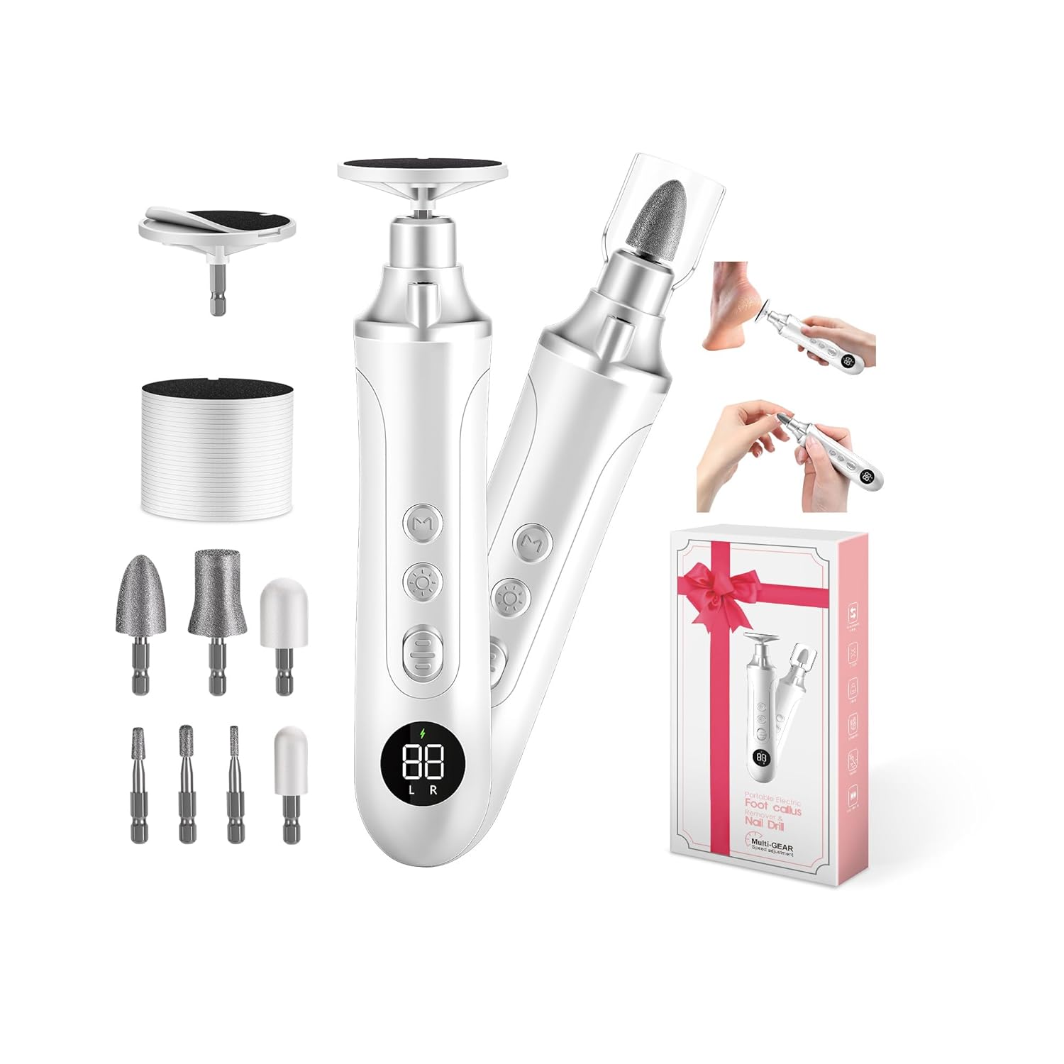 All-in-One Professional Pedicure Kit: Achieve salon-quality results at home with this versatile electric nail file set. The ultimate pedicure tools for feet include 8 interchangeable nail drill bits cuticle trimmer, and buffer tool, 1 Manicure device, 1Clear dust shield, 1Type-C charging cable, 1User manual, 25 Replaceable sand discs . Ideal as a manicure kit for women or man comprehensive toe nail kit & pedicure kit.