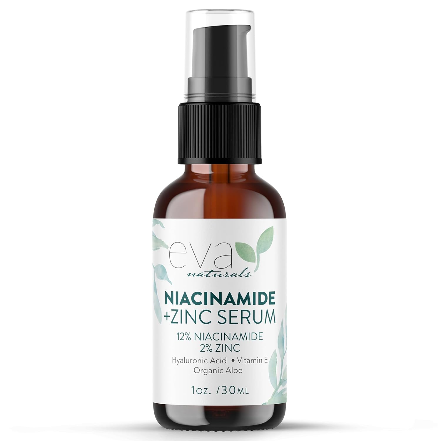 Eva Naturals Niacinamide Serum for Face with Zinc PCA & Botanical Hyaluronic Acid – Pore Minimizer, Dark Spot & Redness Relief, Skin Tone & Texture Support – Lightweight Cream Alternative (1 oz)