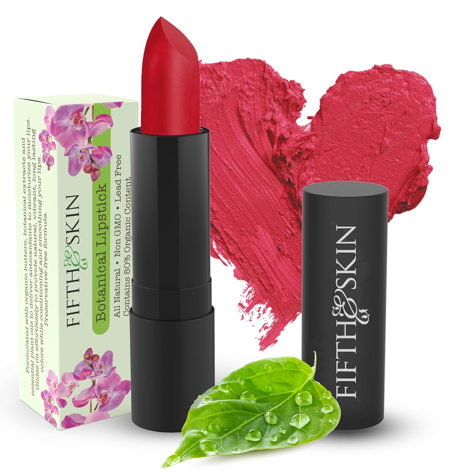 Fifth & Skin BOTANICAL Lipstick (BERRY RED) | Made in USA | Vegan | Natural | Organic | Cruelty Free | Paraben Free | NO Lead | Moisturizing Color that's Good for your Lips!