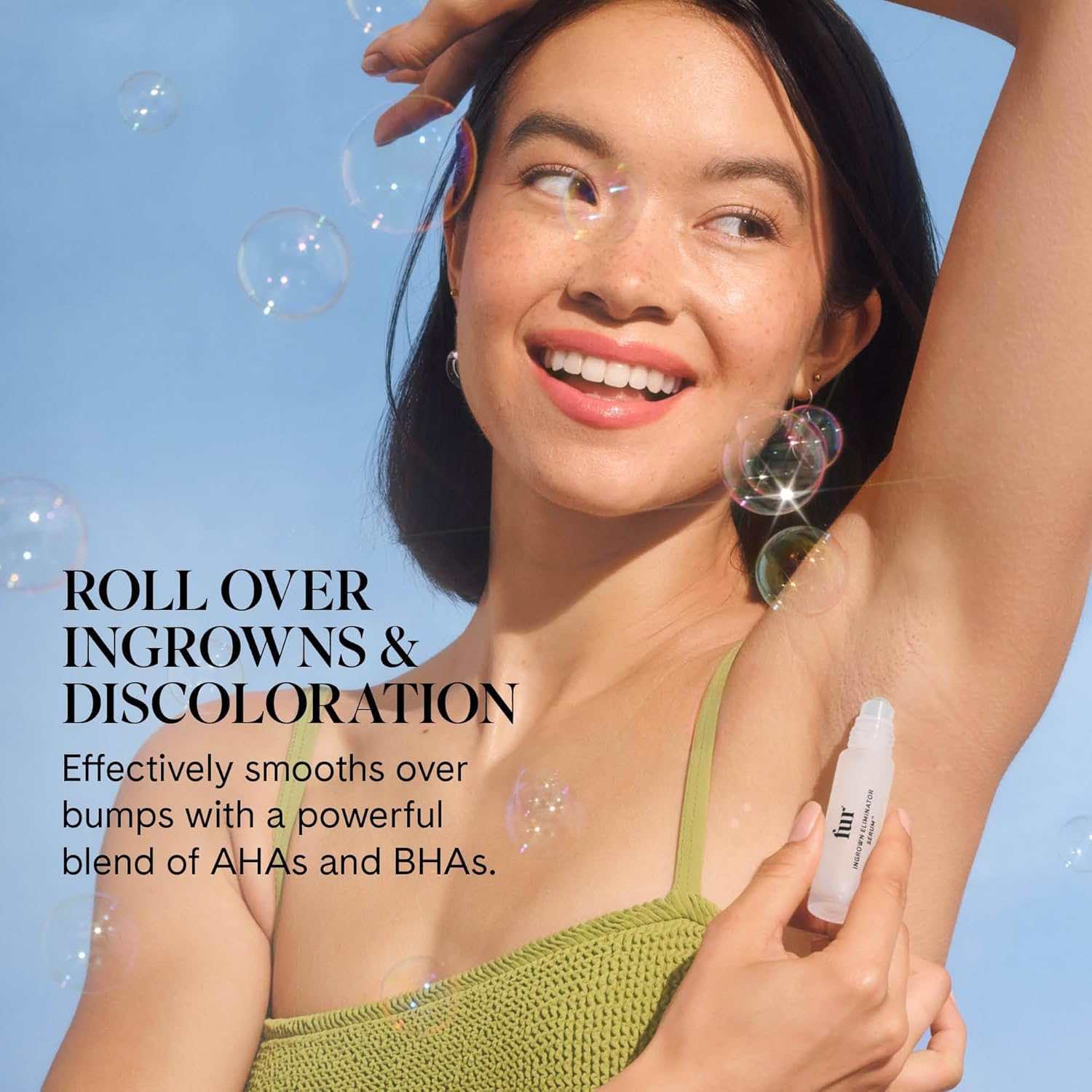 Fur Ingrown Eliminator Serum Rollerball Travel Size - Powerful Ingrown Hair Treatment Serum With AHAs and BHAs to Treat Ingrown Hairs and Bumps, Hydrates and Soothes Irritated Skin - 10 ml