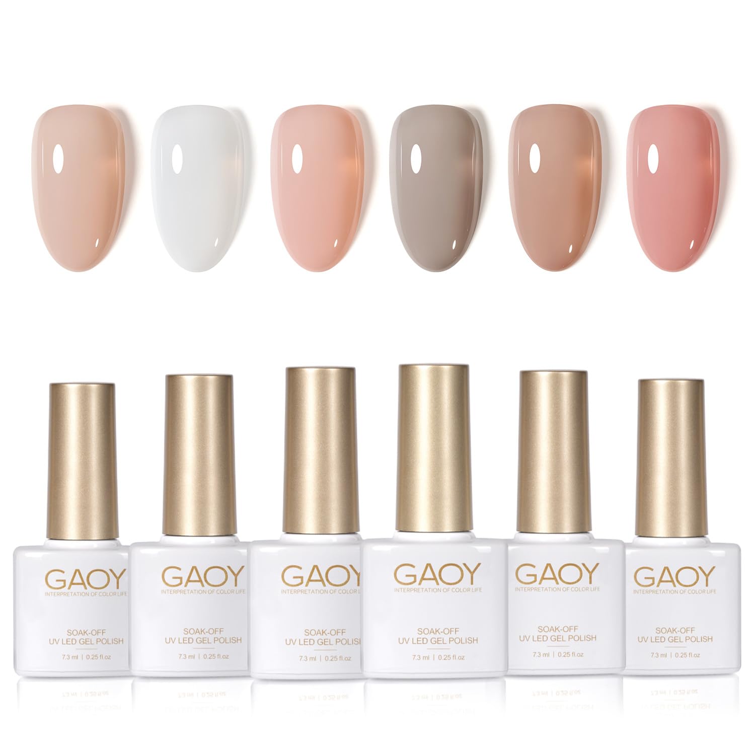 GAOY Jelly White Pink Gel Nail Polish Set, 6 Transparent Colors Sheer Nude Brown, Soak Off UV Light Cure Gel Polish Kit for Nail Art DIY at Home