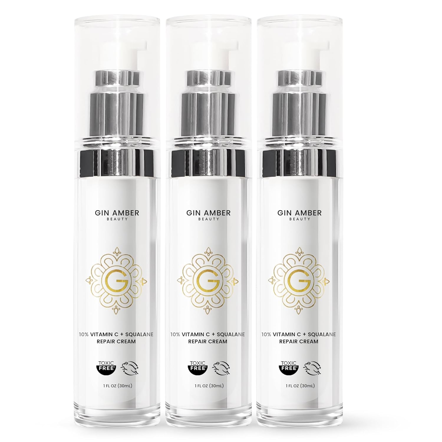Gin Amber Beauty - Vitamin C (10%) + Squalane Repair Cream - Face Moisturizer - Facial Cream- Dark Spot Corrector - Primer - (30ml - 3-Packs)