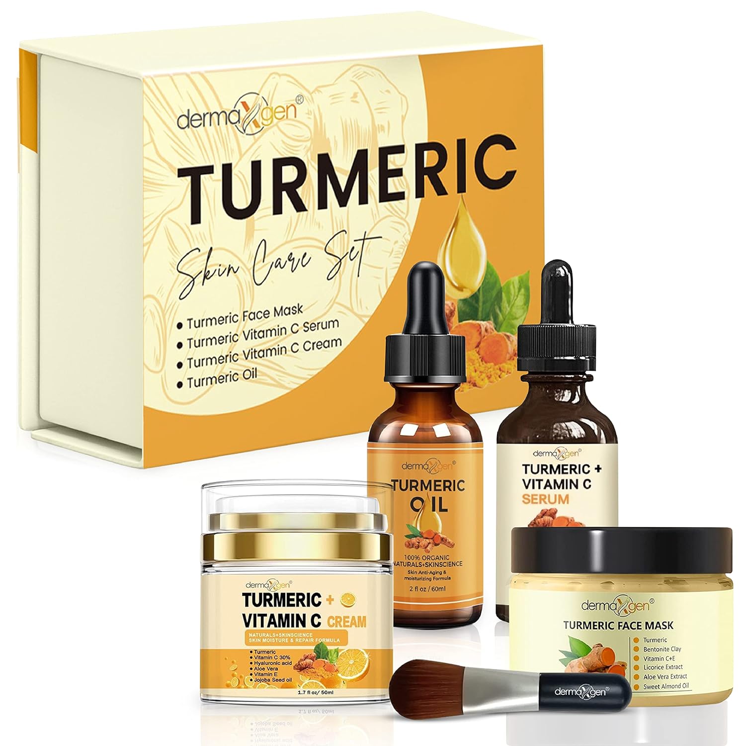 Glow Boosting Moisturizer- Anti-Aging, Reduce Acne, Dark Spot Remover, Hydrates & Controlling Oil & Refining Pores Turmeric Mask - Set of 4 (Turmeric Complete Set)