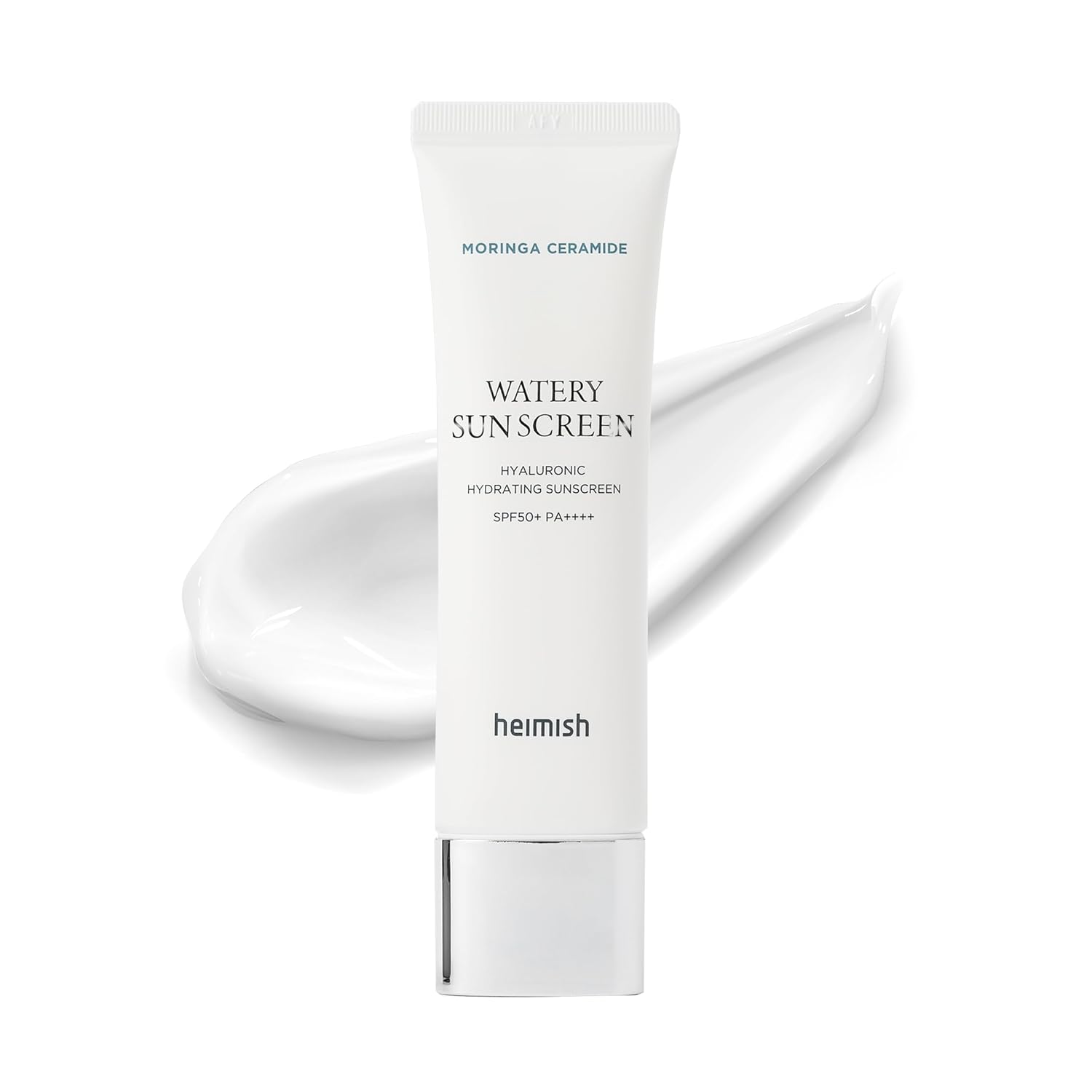 HEIMISH Moringa Ceramide Hyaluronic Hydrating Watery Sunscreen - SPF Face Moisturiser, Daily Sunscreen For Face, Broad Spectrum SPF 50, Non-greasy, Lightweight with Hyaluronic Acid, 1.7fl.oz/50ml