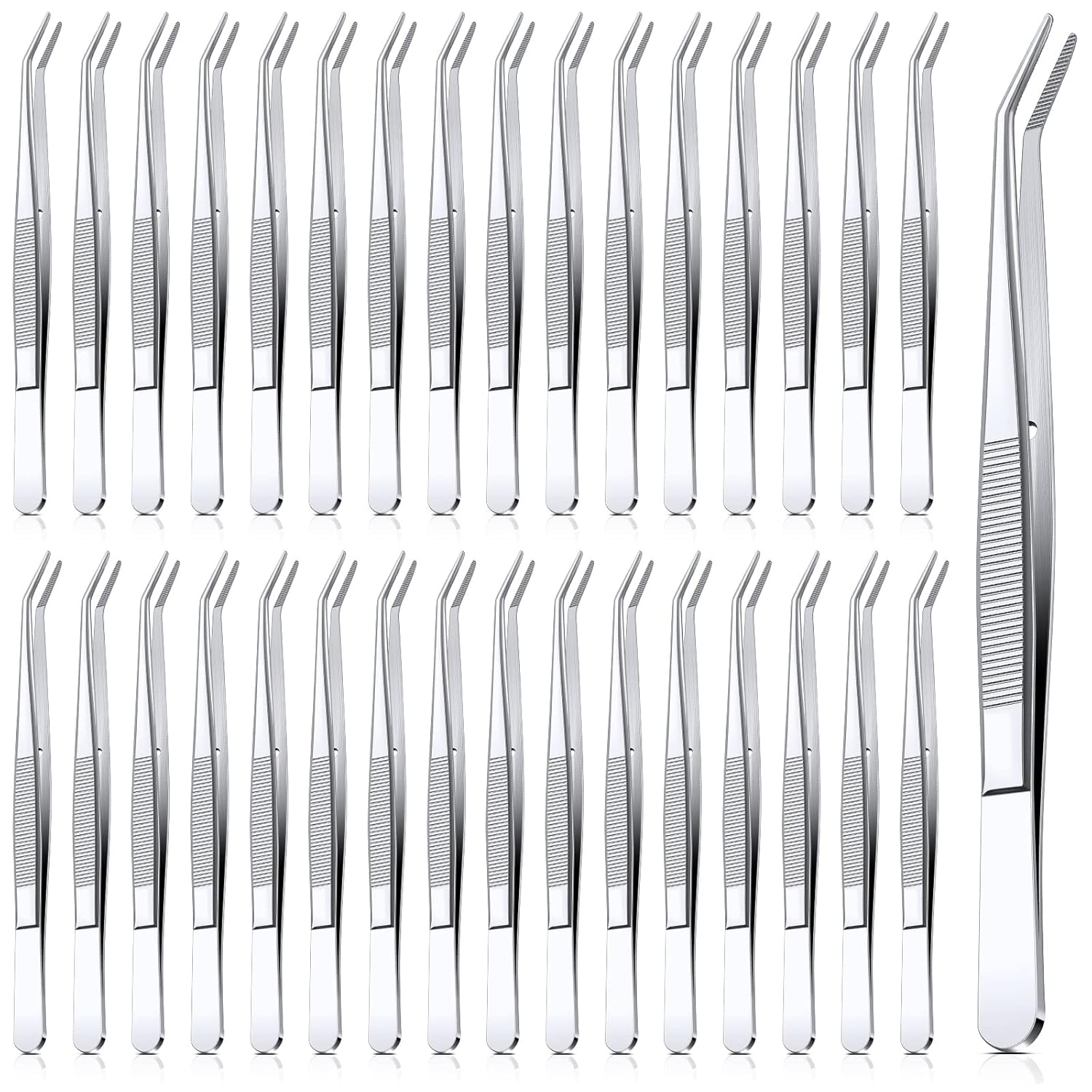 Honoson 32 Pcs Stainless Steel Tweezers for Crafting with Curved Serrated Tip Multipurpose Forceps Sewing Machine Tweezers Bulk (Silver)