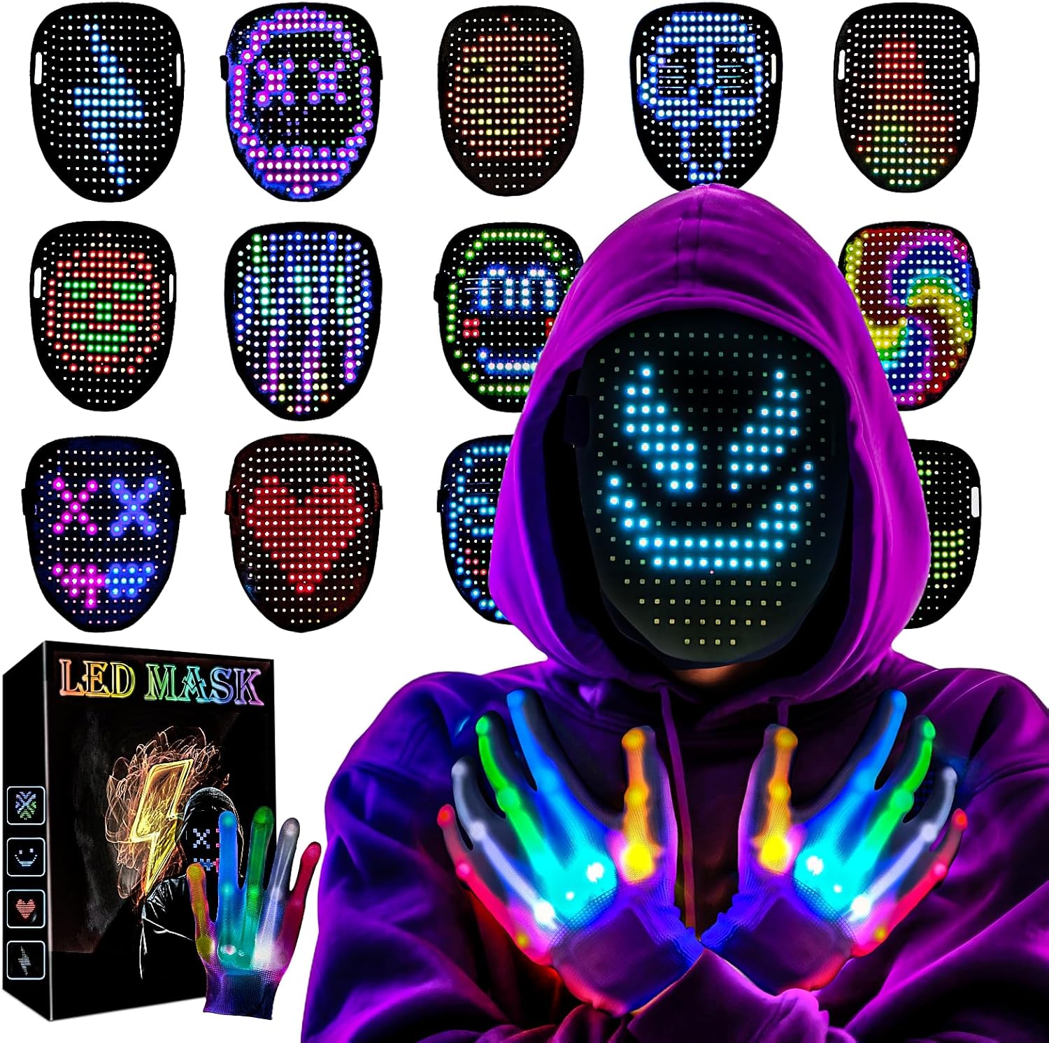Led-Mask Gloves Halloween-Costumes For Kids Men Adult 2025, Light Up Gesture Cosplay Birthday Gifts For Boys 8+