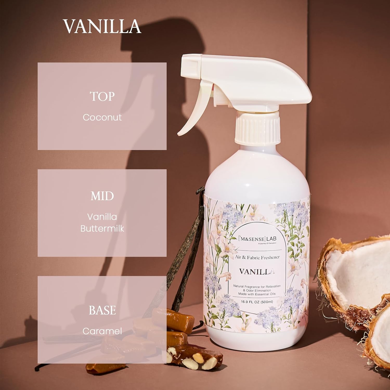 M&SENSE Air & Fabric & Pet Odor Eliminator Spray - 16.9oz Large Size Natural Safe Air Freshener Vanilla Scented Deodorizer for Home Eliminates Smoke & Musty Smells, Ideal for Kitchen & Living Spaces