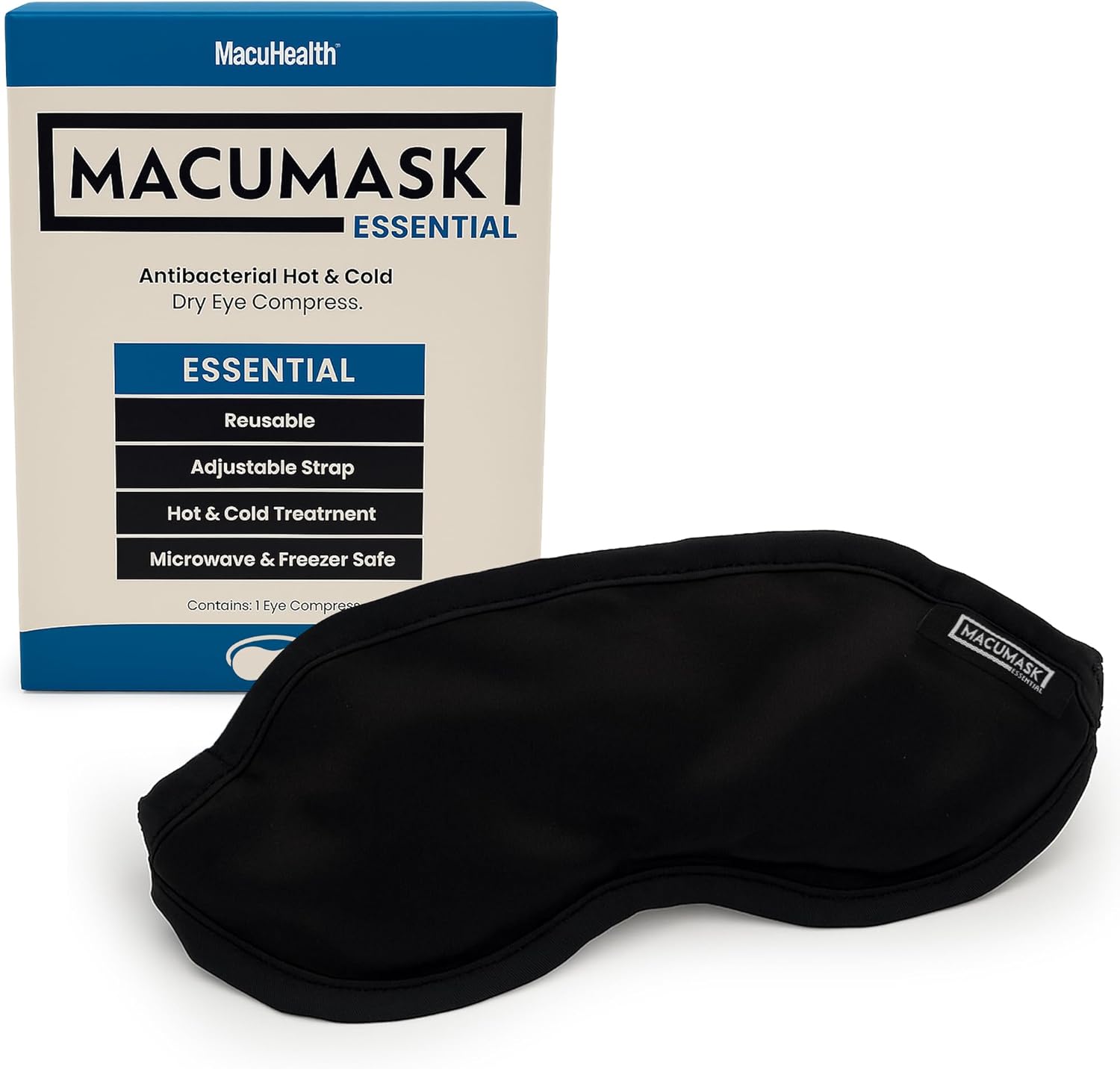 MacuHealth MacuMask Essential - Moist Heat Eye Compress for Dry Eyes, Blepharitis, MGD & Digital Eye Strain, Adjustable Strap, SterilEyes Technology, Microwave & Freezer Safe, Hot or Cold Compress