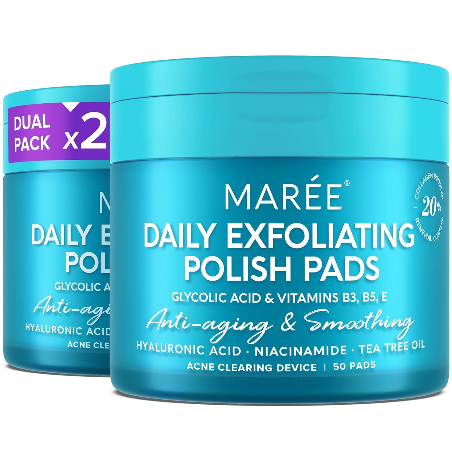 MAREE Glycolic Acid Polishes 2 PACK - Toner Polishes for Face Cleansing - Tea Tree Oil, Salicylic Acid & Vitamins E, B3, B5 - Facial Peel & Radiance Deep Cleaning Effect