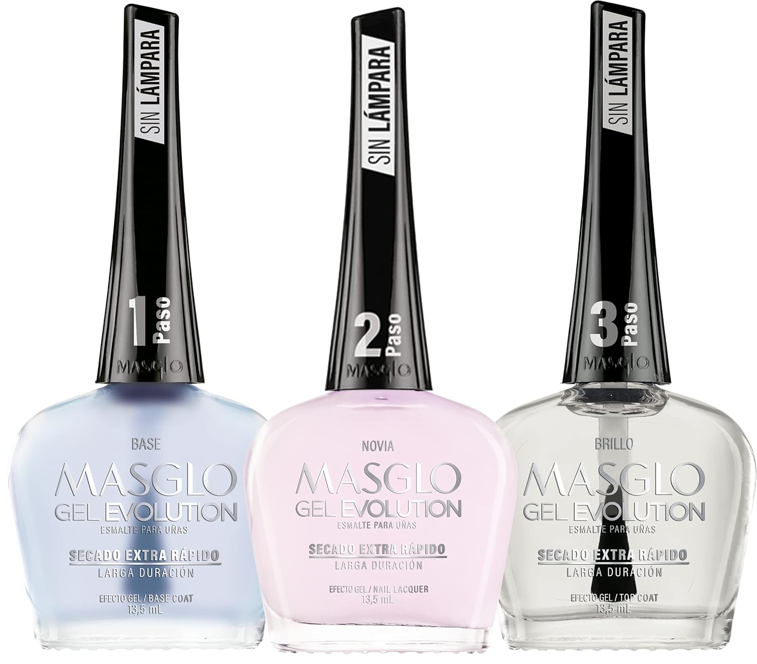 MASGLO Gel Evolution – Set of 3 Nail Polishes No UV/LED Lamp Needed, Fast-Drying, 12-Day Wear, 14-Free Formula, High-Gloss Finish, vegan (0.5 oz Each) h