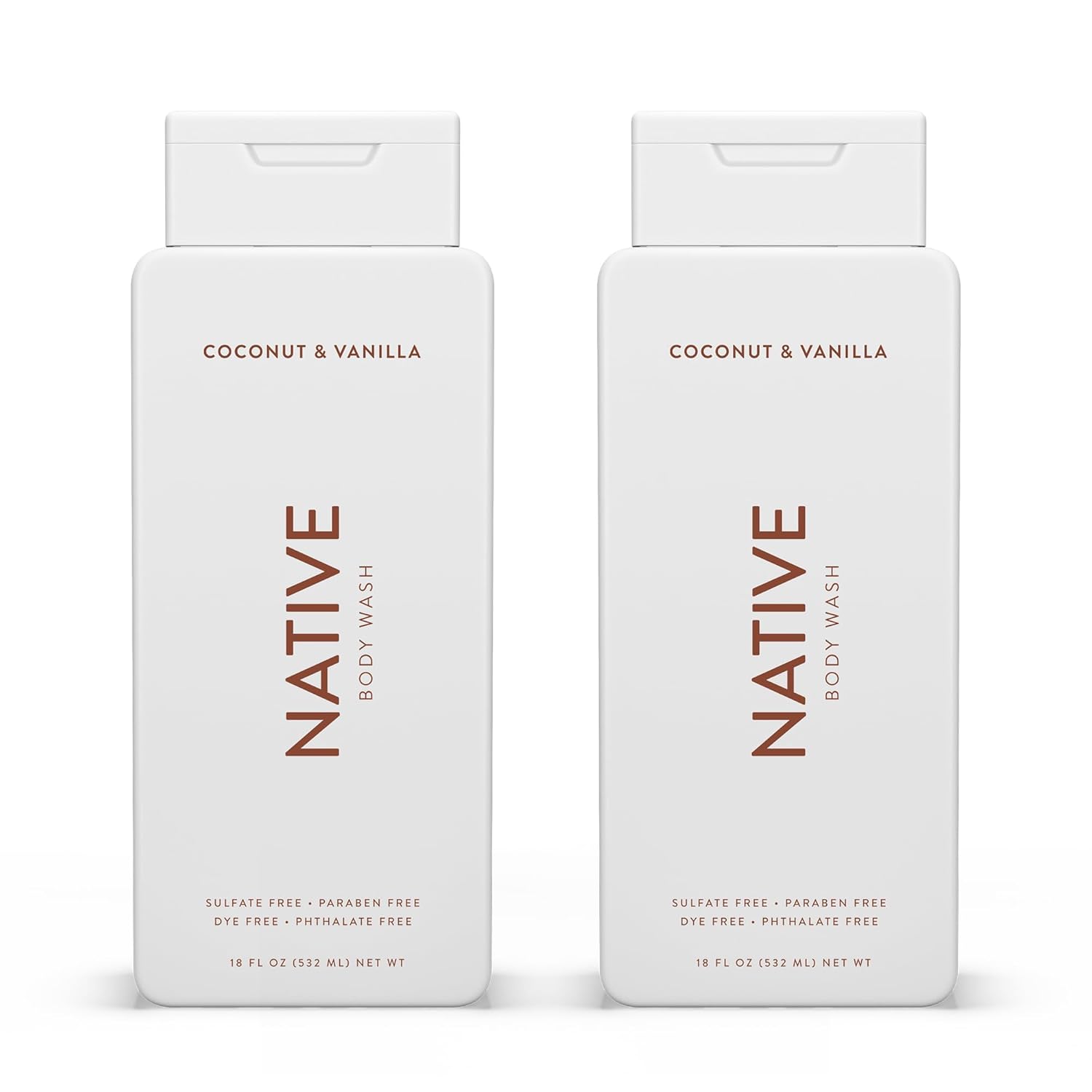 Native Body Wash Contains Naturally Derived Ingredients | For Women & Men, Sulfate, Paraben, & Dye Free Leaving Skin Soft and Hydrated | Coconut & Vanilla 18 oz - 2 Pk