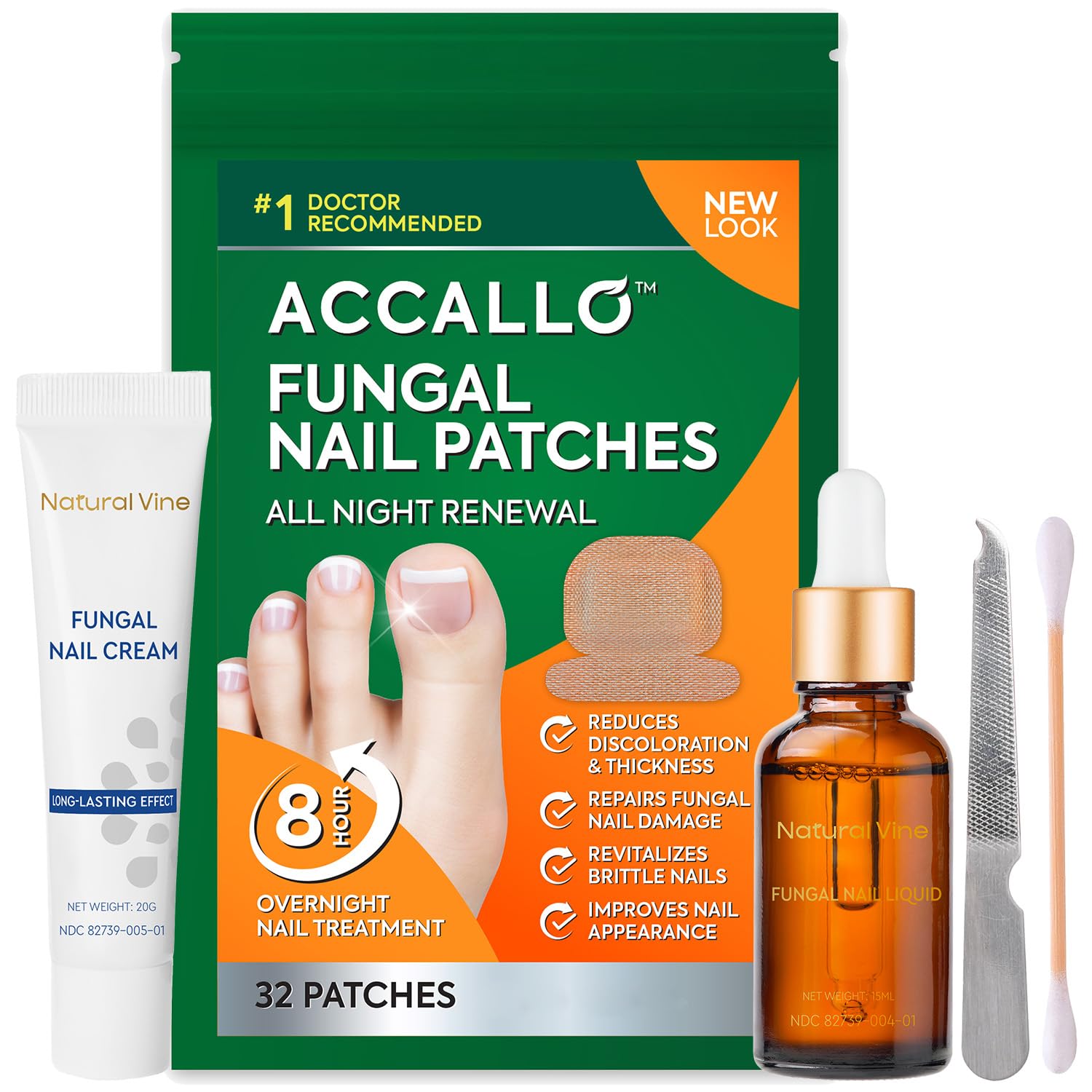 Natural Vine Toenail Fungus Treatment Kit: Fungal Nail Patches 32pcs + Liquid 15mL + Cream 20g Extra Strength for Toenail & Fingernails