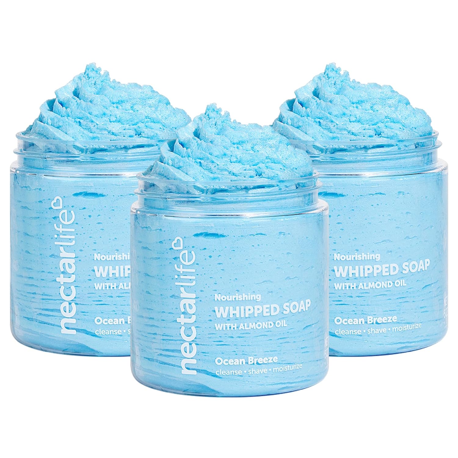 Nectar Life Nourishing Whipped Soap and Shave Butter with Almond Oil, Ocean Breeze Scent, Set of 3, 5 Oz each