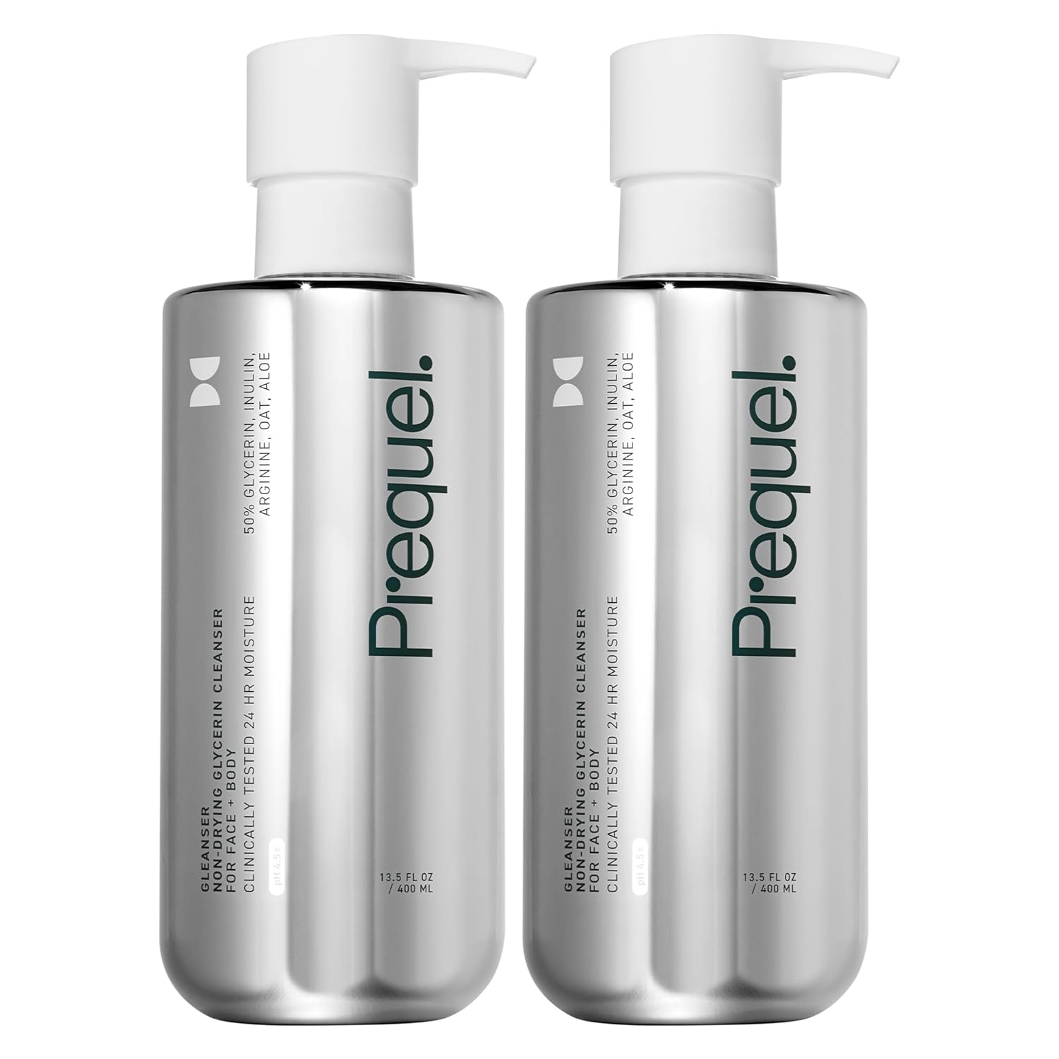 Prequel Skin Gleanser, Moisturizing Glycerin Face Wash, Professional Strength Face Cleanser for Women, Unscented Sensitive and Dry Skin Face Wash Pump Bottles - 6.75 fluid ounce (Pack of 2)