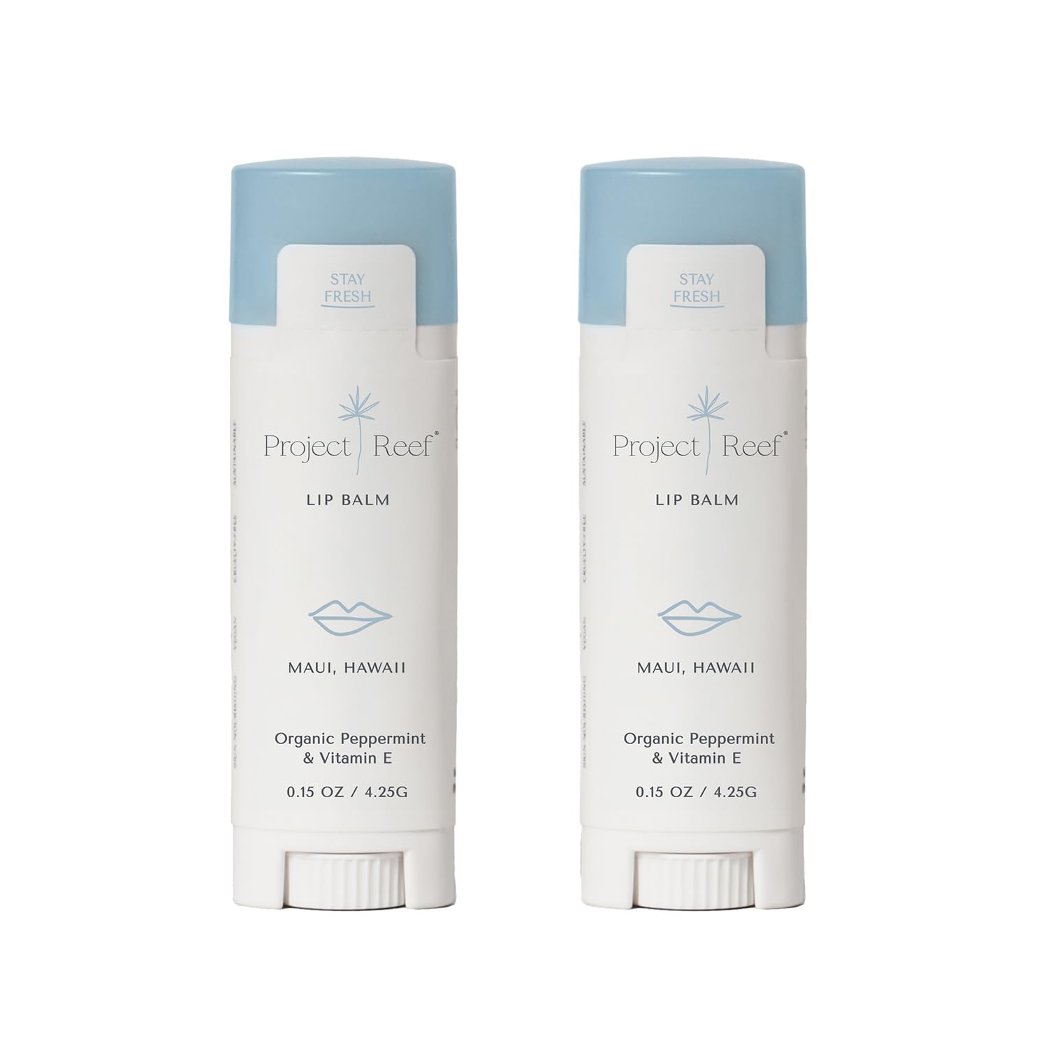 Project Reef Herbal Peppermint Lip Balm – Vegan, Reef-Safe & Hydrating Lip Care with Organic Peppermint, Shea Butter & Vitamin E – Natural Sunburn Relief & Daily Care, 0.15 oz, 2 Pack