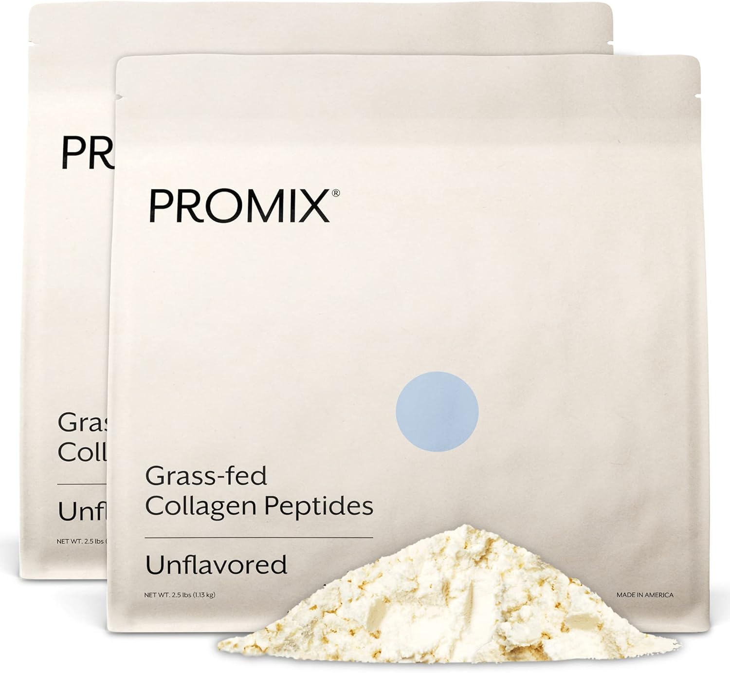Best for Skin, Bones, Joints, and Recovery Support: Promix Collagen Peptides are hydrolyzed type I and III collagen peptides from grass-fed Brazilian cattle. This unsweetened, light, and clean powder contains key amino acids to support gut and joint health.* Unflavored. 2 bags with 52 servings each, 2 scoops per serving.
