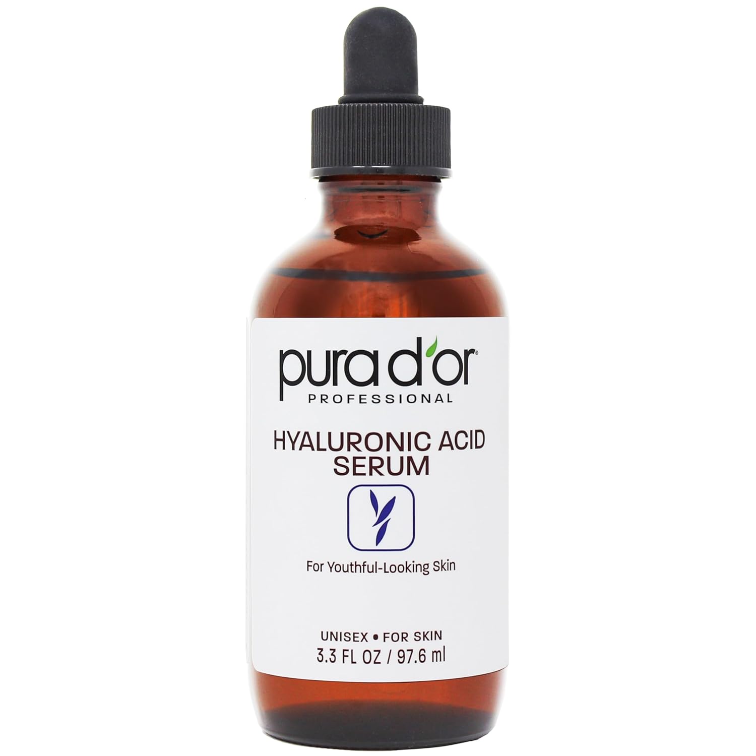 PURA D'OR 3.3 Oz Hyaluronic Acid Serum For Deep Hydration - Anti-Aging, Plumping & Moisturizing Formula For Smooth, Supple Skin - Natural Skincare Boost - Fine Lines & Wrinkle Reducer - Travel Size