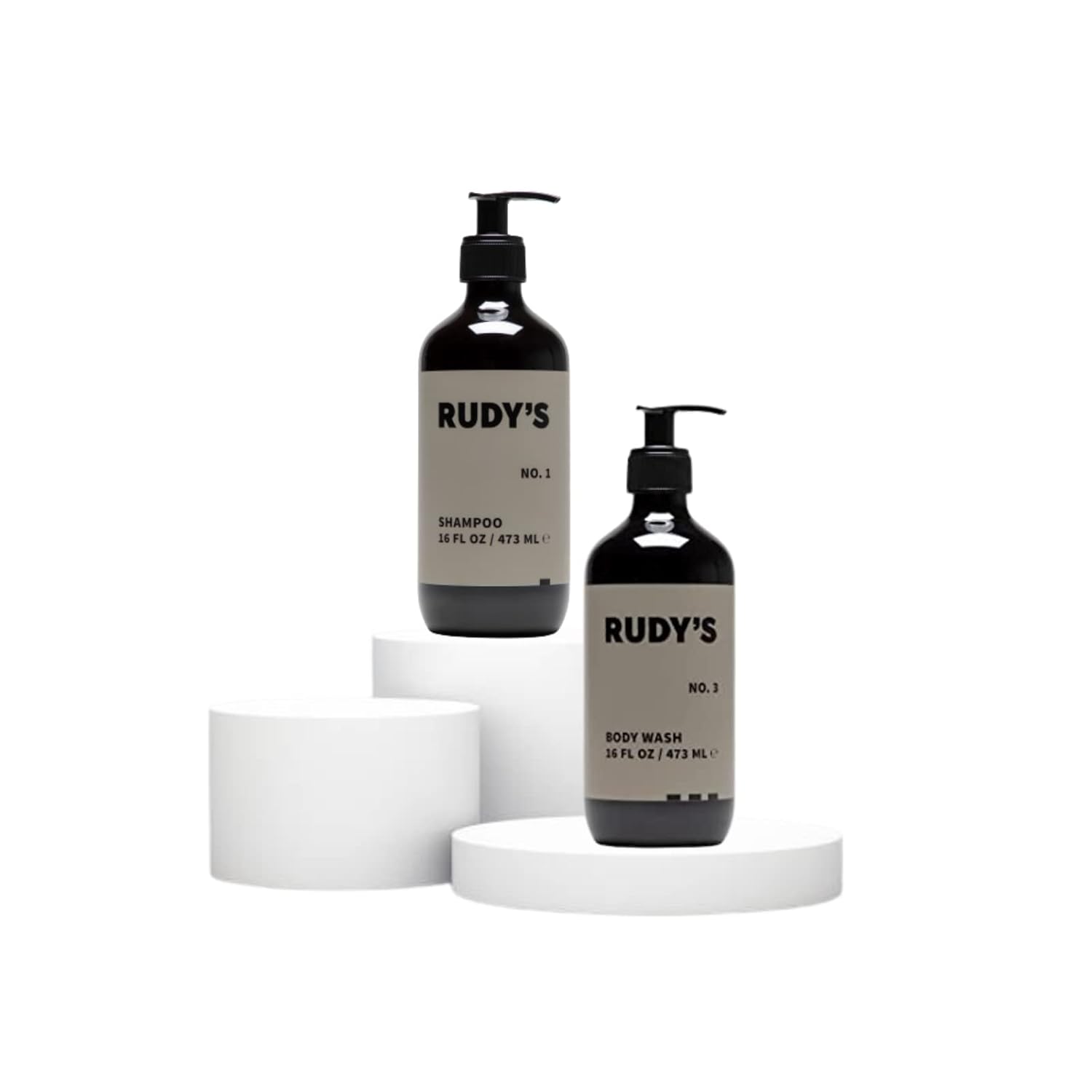 RUDY's 1-3 Shower Essentials Bundle - Shampoo and Body Wash - Natural Ingredients, Sulfate & Paraben Free (16 fl oz Each)