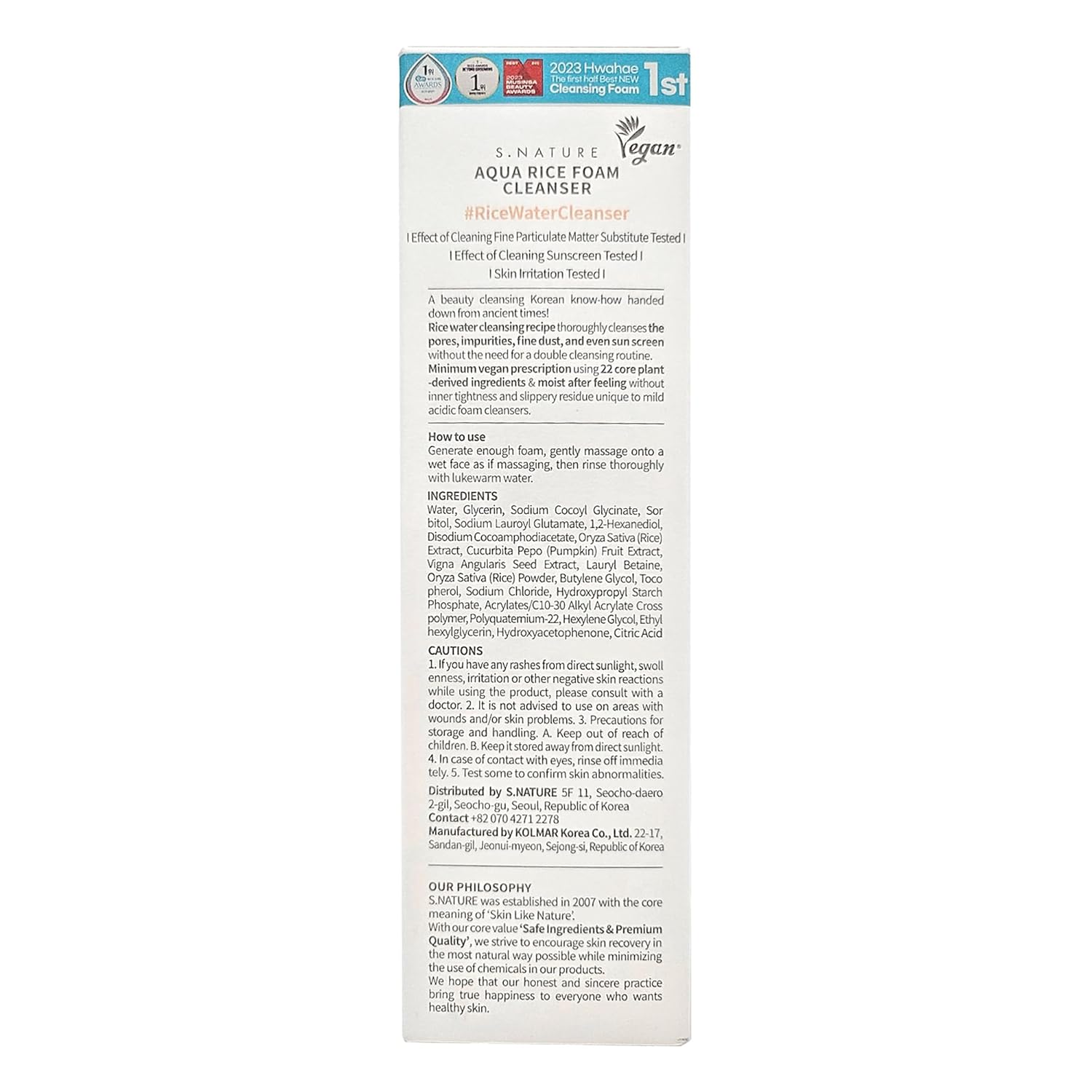 S.NATURE AQUA RICE FOAM CLEANSER | Facial Cleanser, Rice Extract Rice Powder Cleanser with Mild Cleansing, Glycerin,Vegan, Face Wash, Korean Skincareㅣ 160ml 5.4 Fl Oz