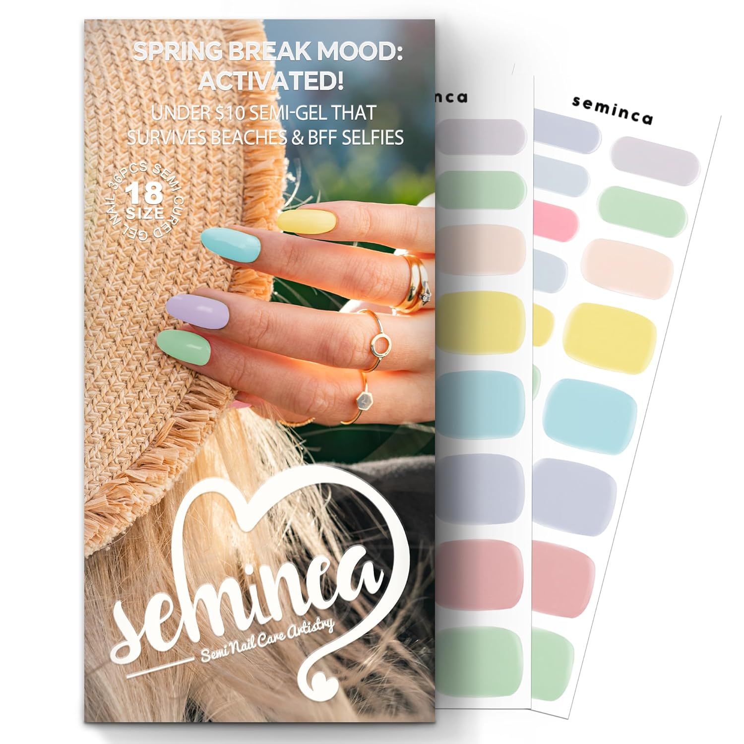 Semi Cured Gel Nail Strips-Candy Color Semi Gel Nail Stickers,36pcs DIY Salon Nails at Home Quick Manicure Press On Nails,Works with Any UV/LED Lamps(Pastel Light Colors)