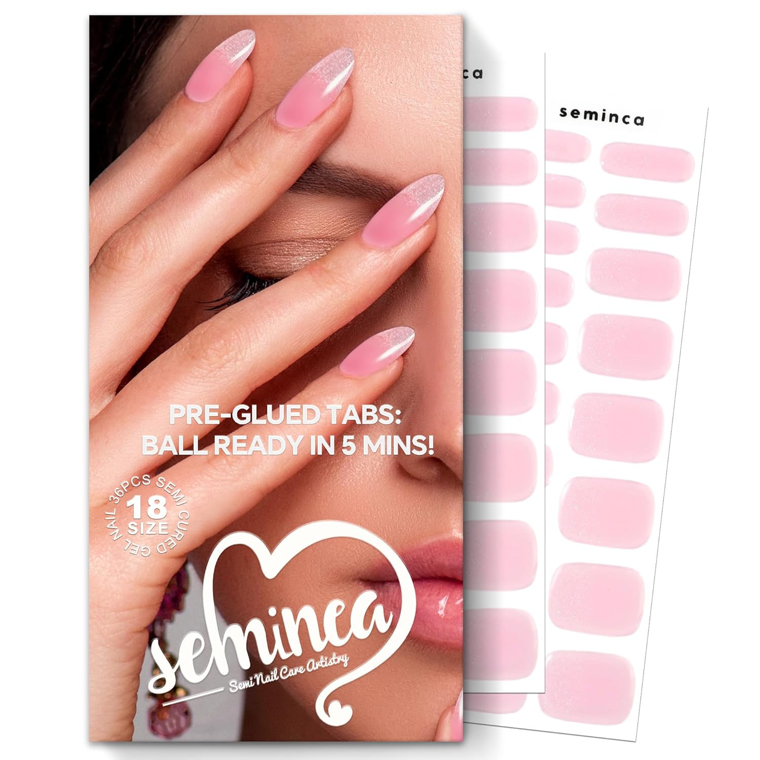 Semi Cured Gel Nail Strips-Semi Cured Gel Nails Valentine's Day - Medium Almond Pink Shimmer Press on Nails, Iridescent Glitter Design, 60s UV Light Needed(Pink Gradient)