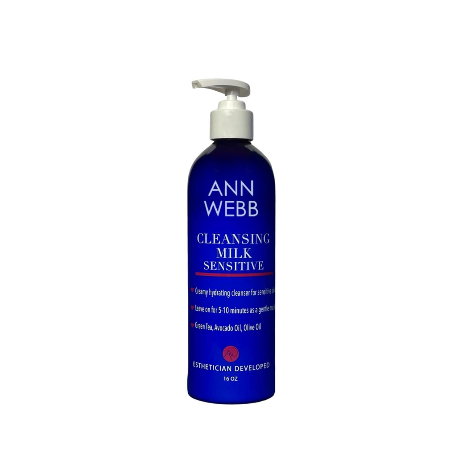 Ann Webb Senstivie Milk Cleasner is A thick, hydrating cleanser with lactic acid Clinically proven to deep clean by removing dirt, excess oils