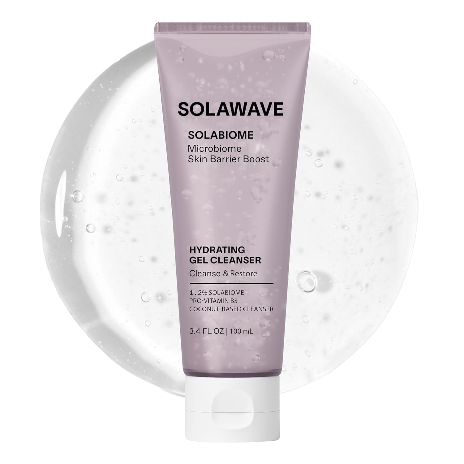 Solawave Probiotic Gel Facial Cleanser with Prebiotics and Pro Vitamin B5, Hydrating and Soothing Formula to Remove Makeup and Reduce Blemishes - Non-Comedogenic for All Skin Types (3.4 FL OZ)