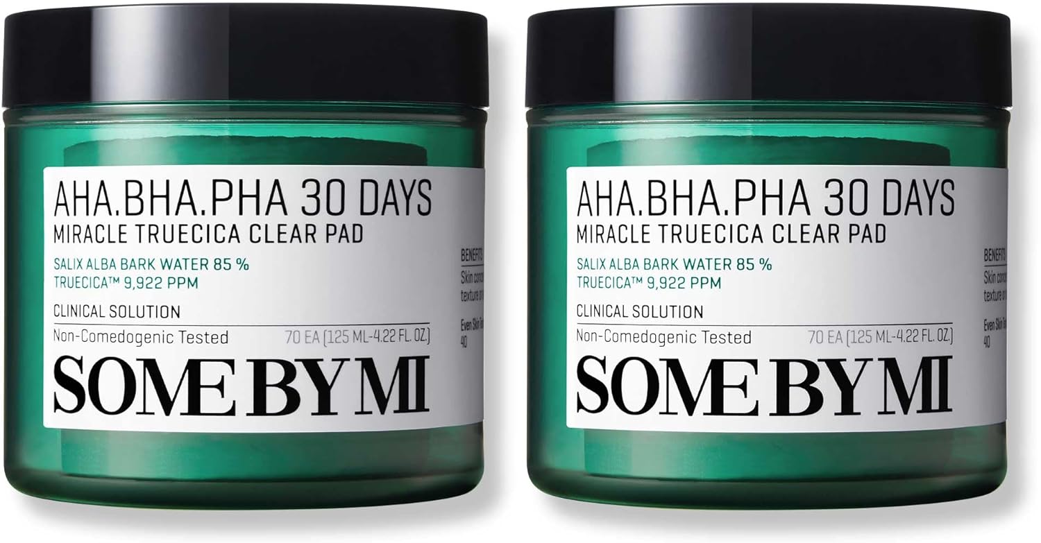 SOME BY MI AHA BHA PHA 30 Days Miracle Truecica Clear Pad – Pack of 2 – Korean Exfoliating Centella Face Toner Pads – Gently Clears Impurities, Refines Pores & Smooths Skin Texture – Korean Skin Care