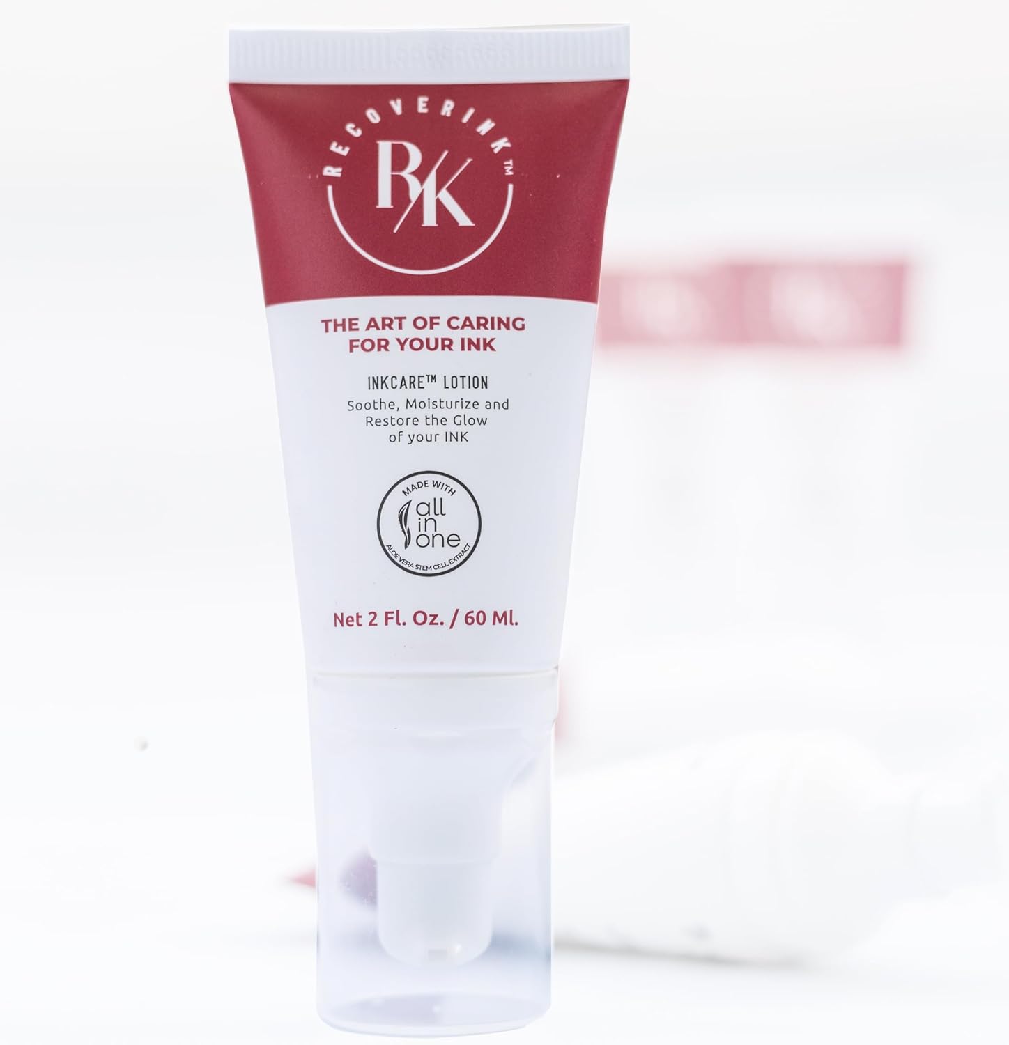Tattoo Aftercare Lotion with Aloe Vera, 2oz, Hydrate + Heal + Highlight your ink - Recover Co, White