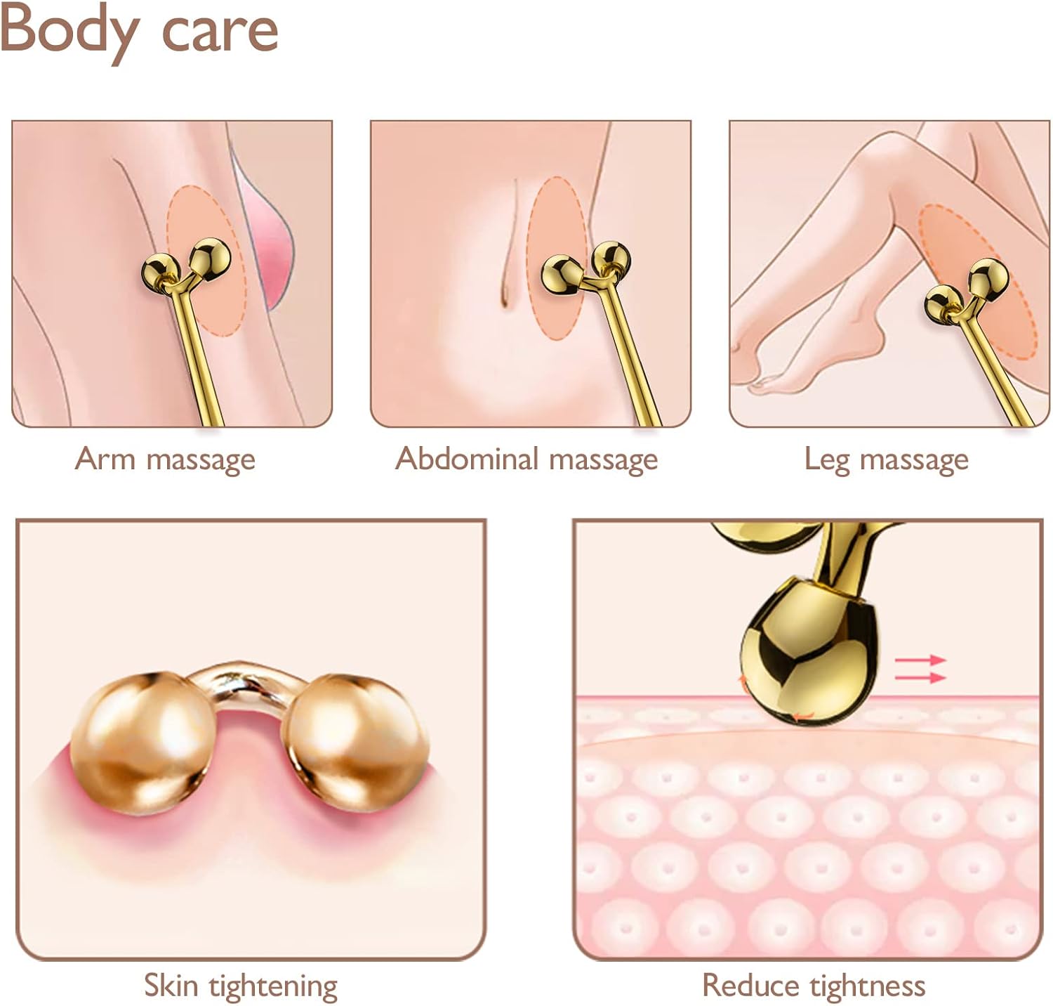 Tekson Facial Roller Massager, 3D Metal face Massage Tool for Eye Reduce Puffiness, Face Lift, Anti-Aging, Skin Tightening (Gold