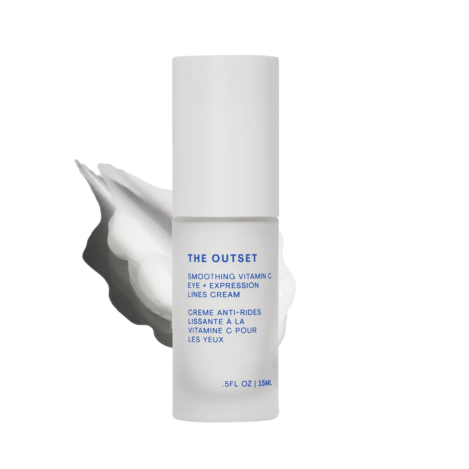 The Outset Vitamin C Smoothing Eye + Expression Lines Cream - Gentle Fragrance Free - Wrinkle Reducing, Brightening - Clean, Vegan, Gluten Free - All Skin Types Sensitive Skin - .5 fl oz