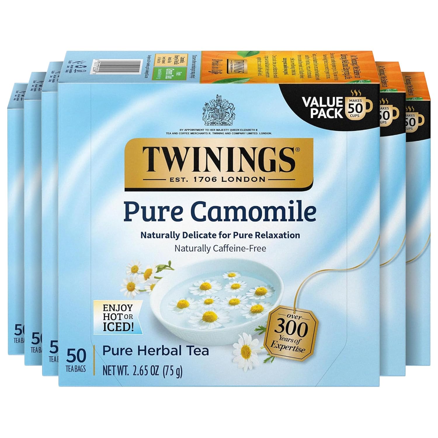 Twinings Pure Camomile Herbal Tea individually Wrapped Bags, 50 Count (Pack of 6), Naturally Caffeine-Free, Enjoy Hot or Iced, 300 Teabags