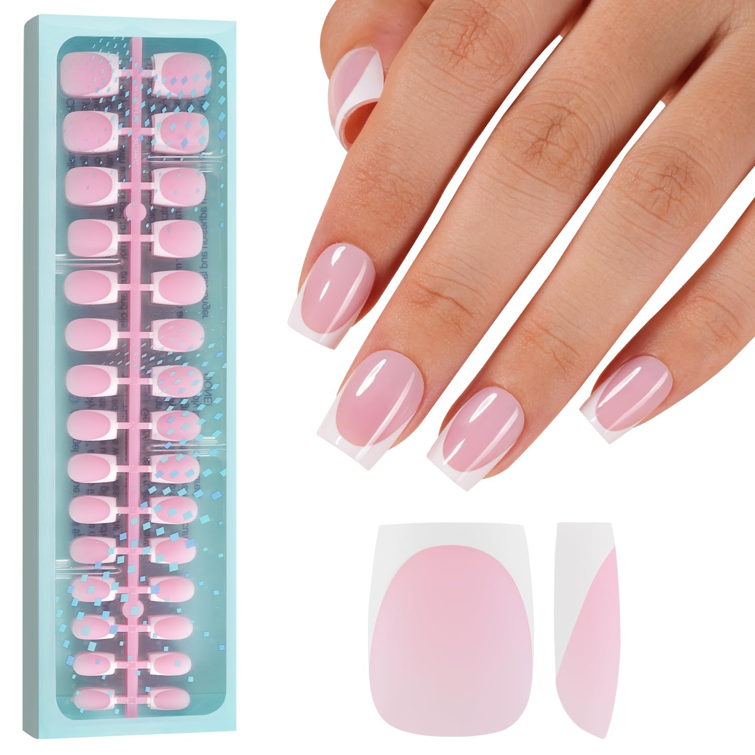 Vansiho French Gel Nail Tips, Pink 150Pcs Short Square Soft Gel Nail Tips, French Tips Press on Nails, Fake Nails for Nail Art DIY 15 Sizes