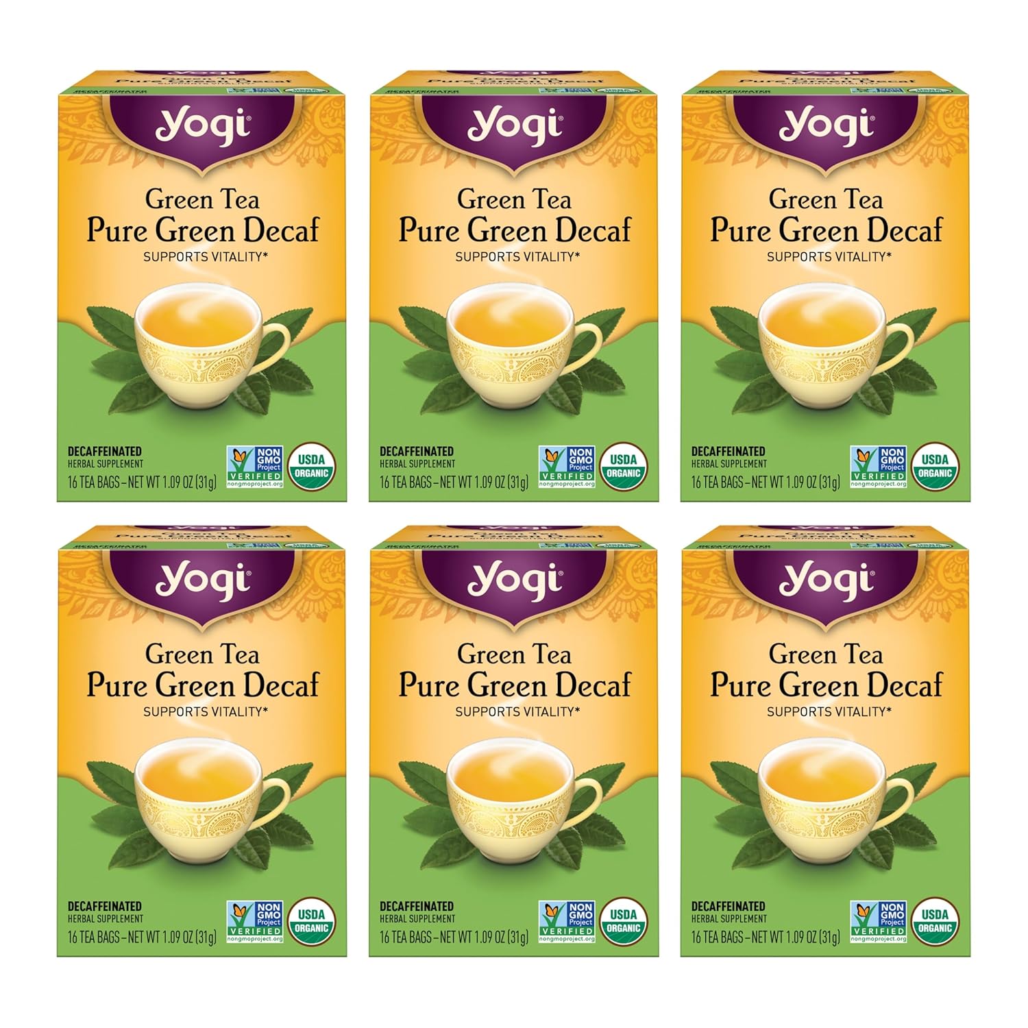Yogi Tea - Green Tea Pure Green Decaf (6 Pack) - Supports Vitality - 96 Tea Bags
